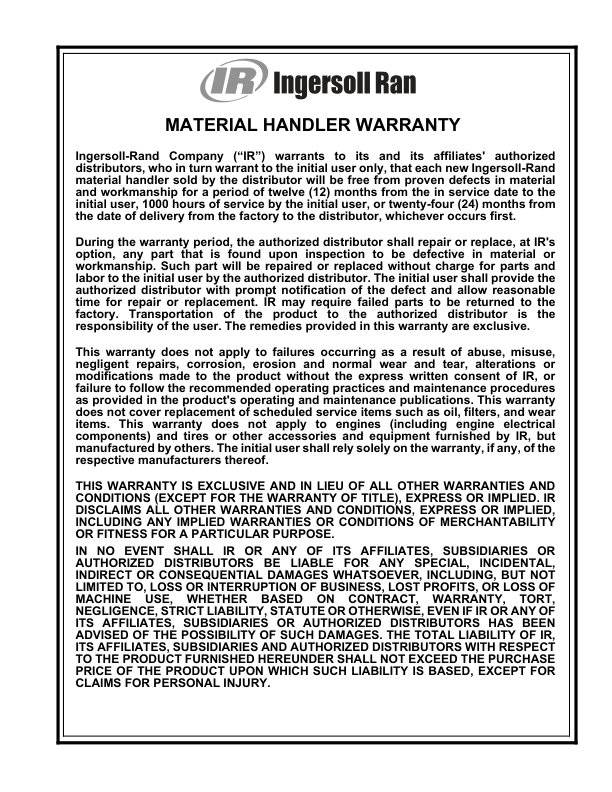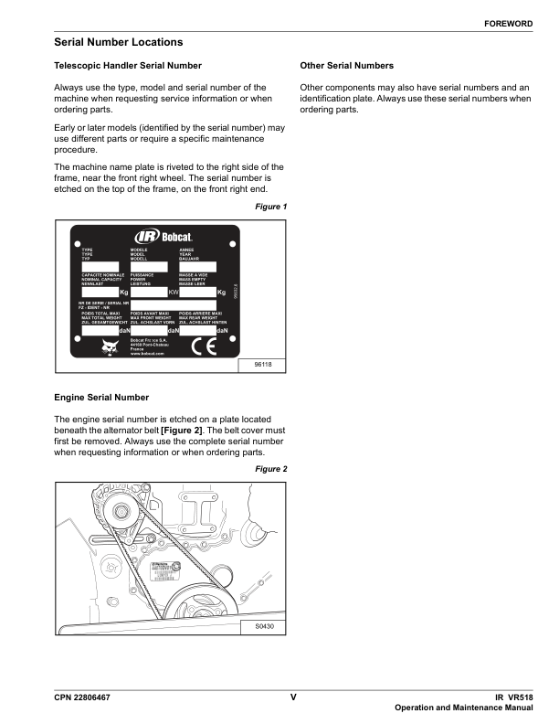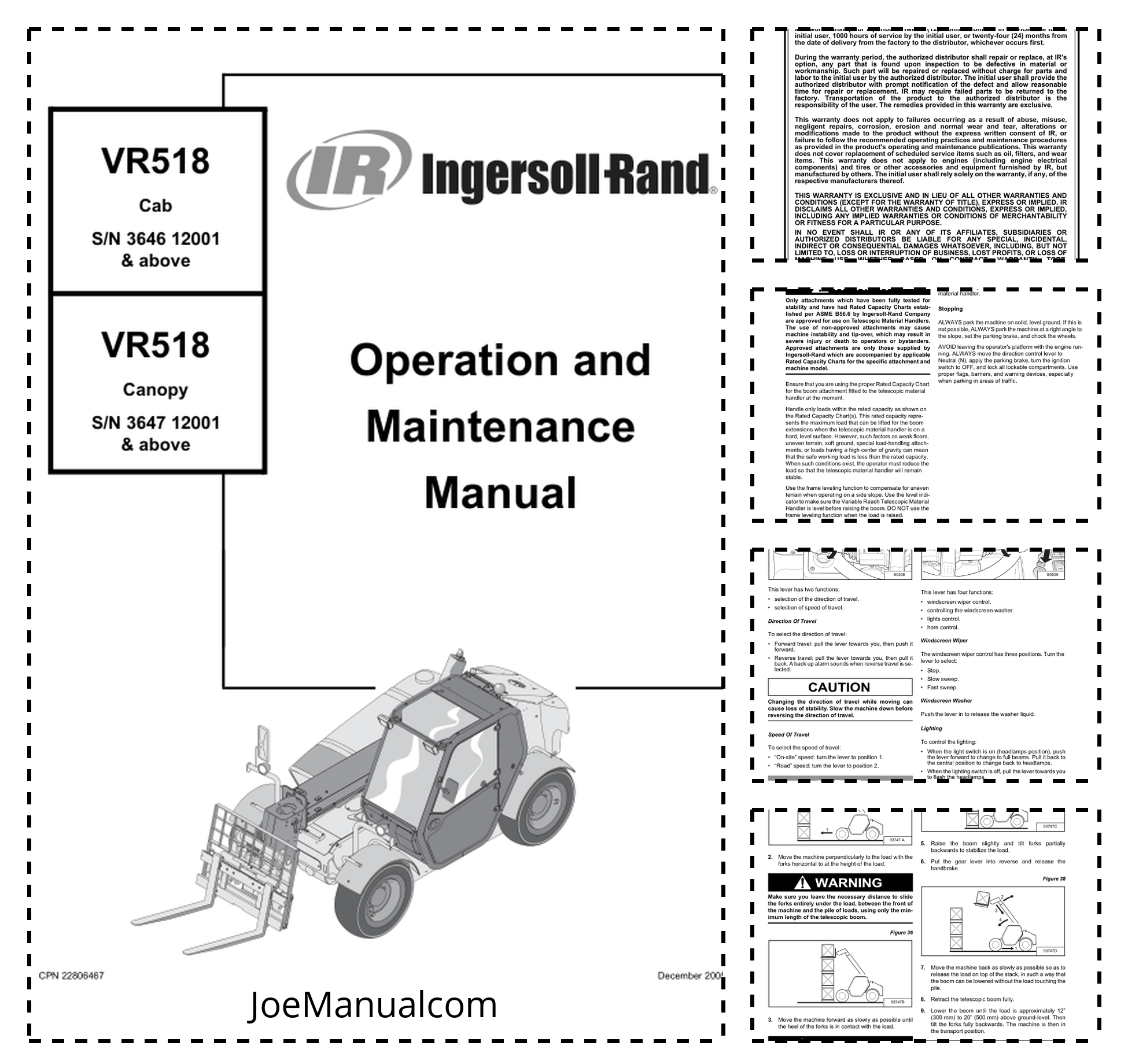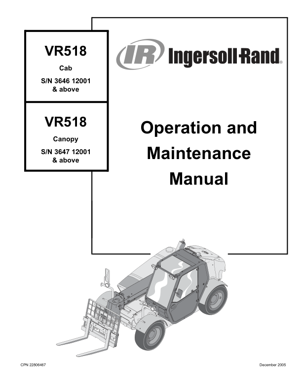 Ingersoll-Rand Bobcat VR518 Telehandler Operation and Maintenance Manual