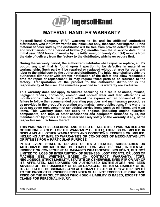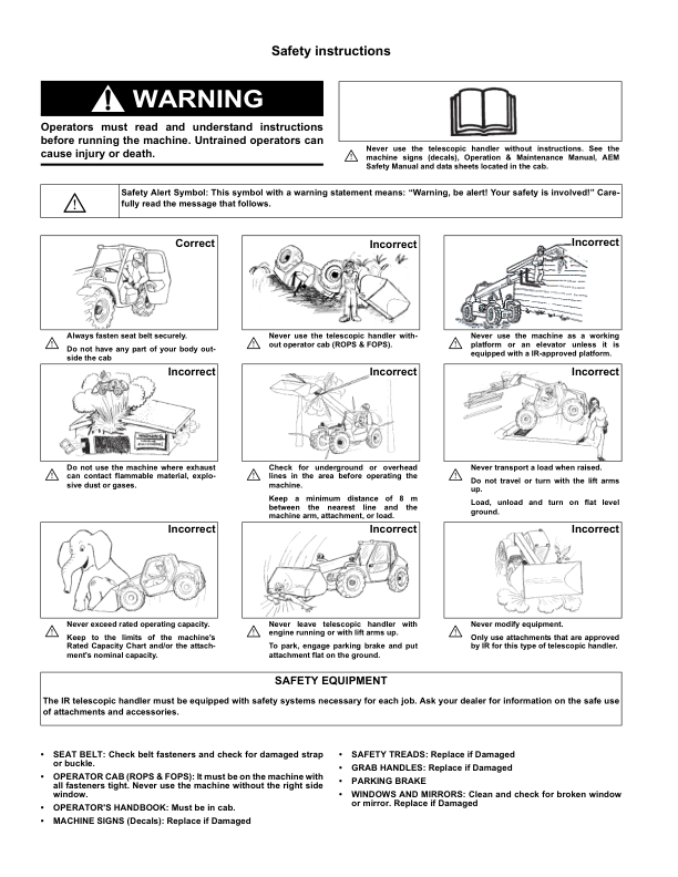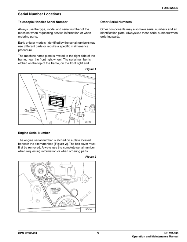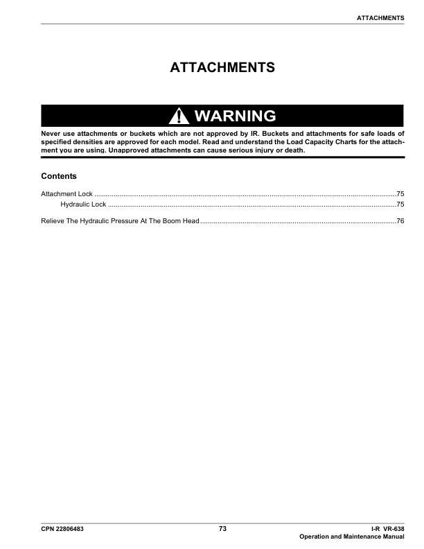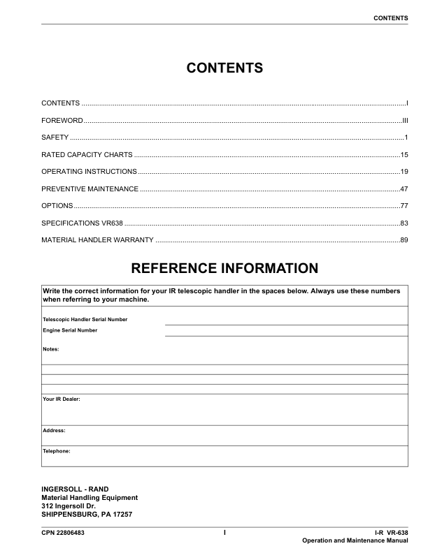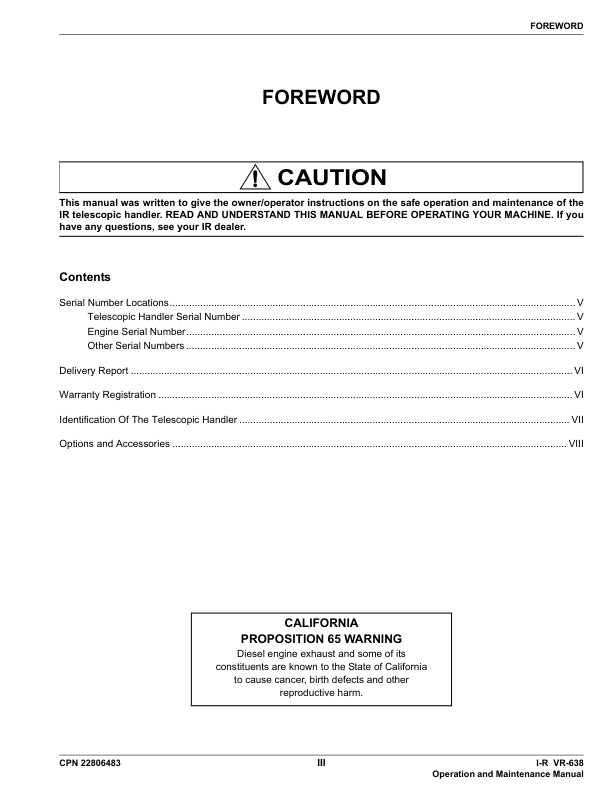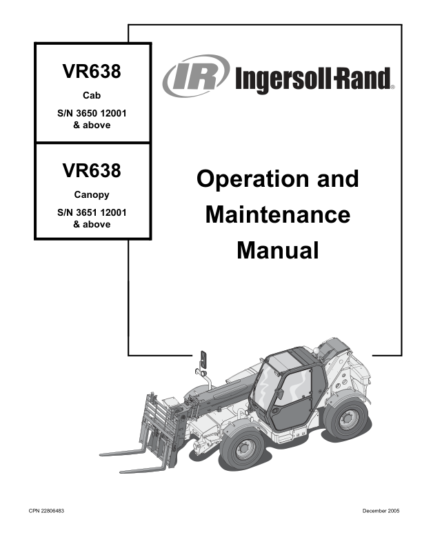 Ingersoll-Rand Bobcat VR638 Telehandler Operation and Maintenance Manual
