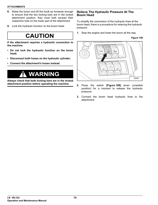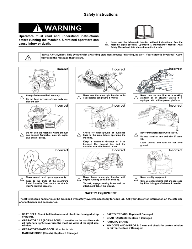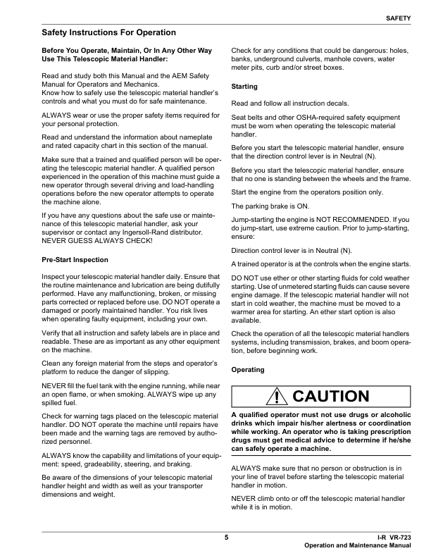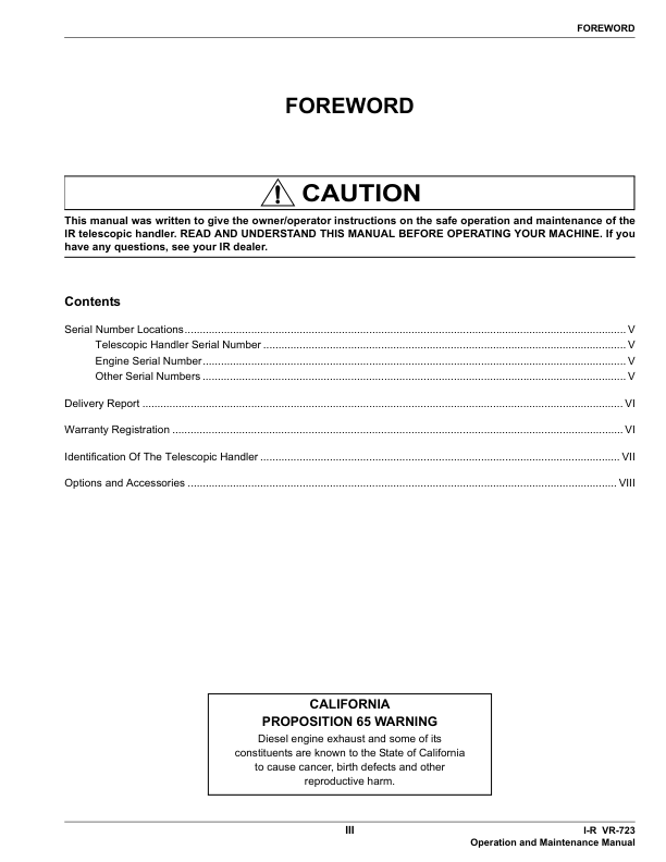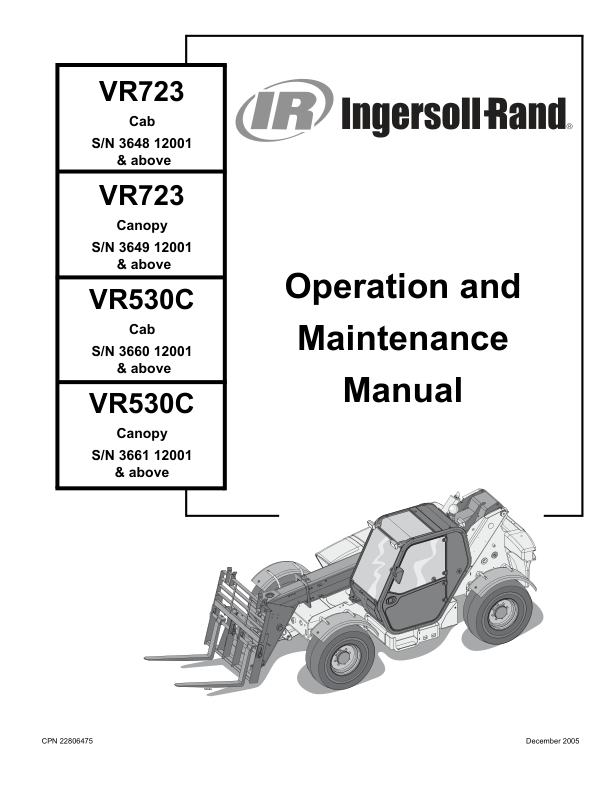Ingersoll-Rand Bobcat VR723 VR530 C Telehandler Operation and Maintenance Manual