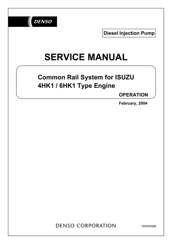 Isuzu 4HK1 and 6HK1 Common Rail System Service Manual provides comprehensive technical information for servicing and maintaining Isuzu diesel engines equipped with common rail fuel systems. This manual covers detailed procedures for diagnostics, repair, and overhaul. Essential for technicians working on Isuzu vehicles with 4HK1 or 6HK1 engines.