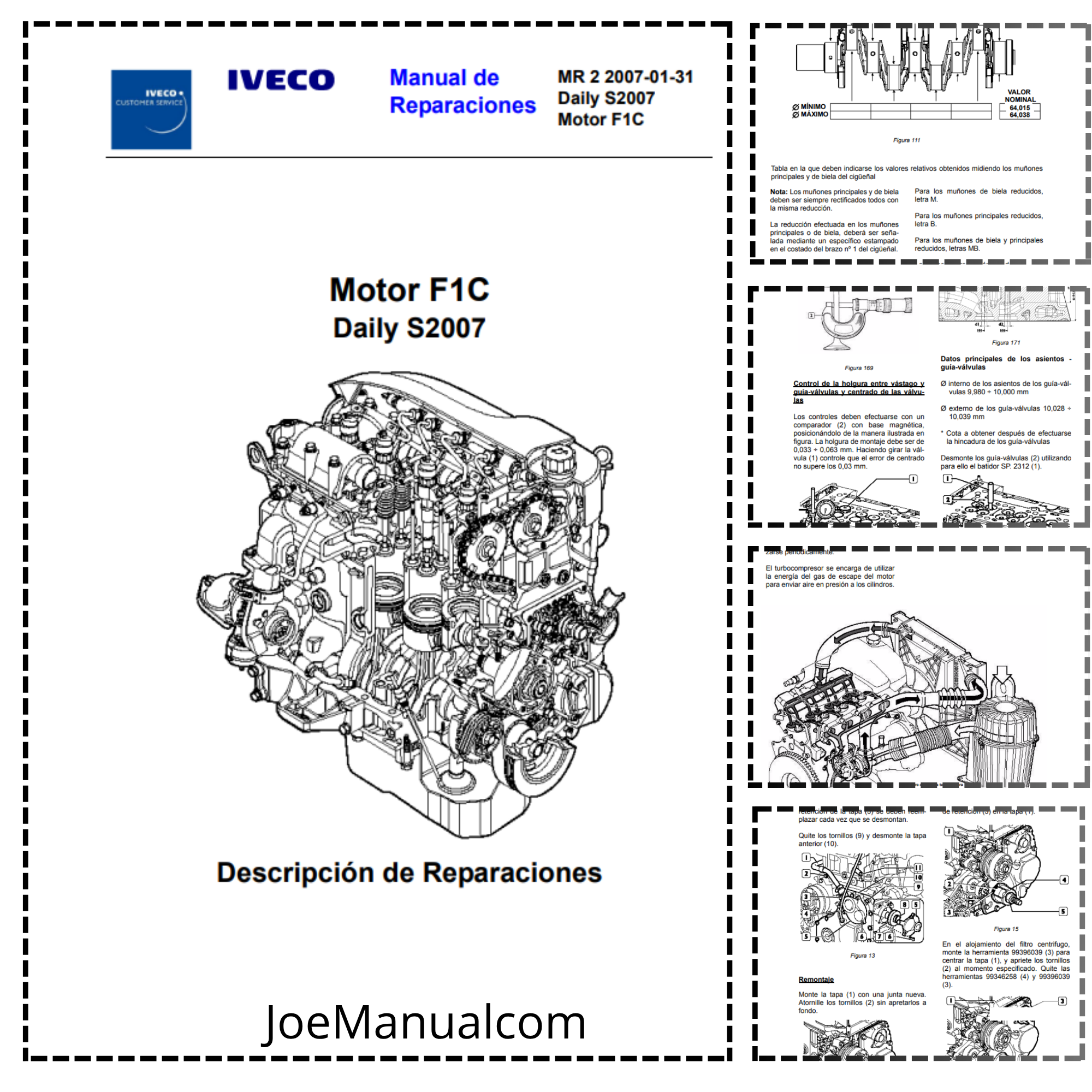 This service manual provides detailed instructions for the maintenance and repair of the IVECO Daily Engine F1C, specifically for the 2007 model year. It includes comprehensive procedures for diagnosing, troubleshooting, and repairing engine components, such as the fuel system, turbocharger, cooling system, and lubrication system. The manual features step-by-step guidance on disassembly, inspection, reassembly, and adjustments, along with technical specifications and diagrams. Additionally, it offers maintenance schedules and safety instructions to ensure optimal engine performance and longevity. This document is essential for mechanics and technicians to perform accurate repairs and maintain the IVECO Daily Engine F1C effectively.
