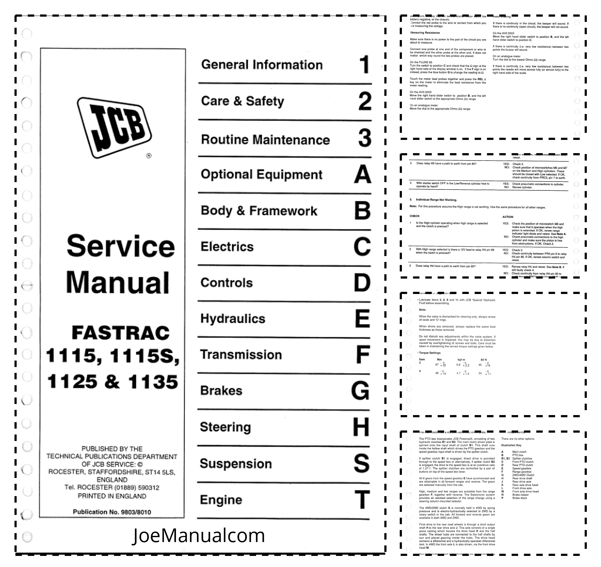 JCB 1115 1115S 1125 1135 Fastrac Tractor Service Manual 9803/8010