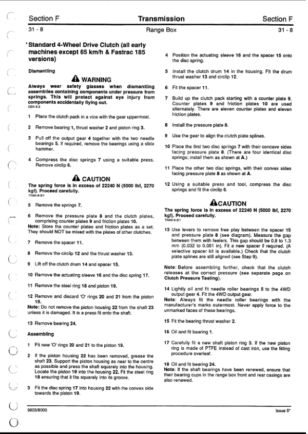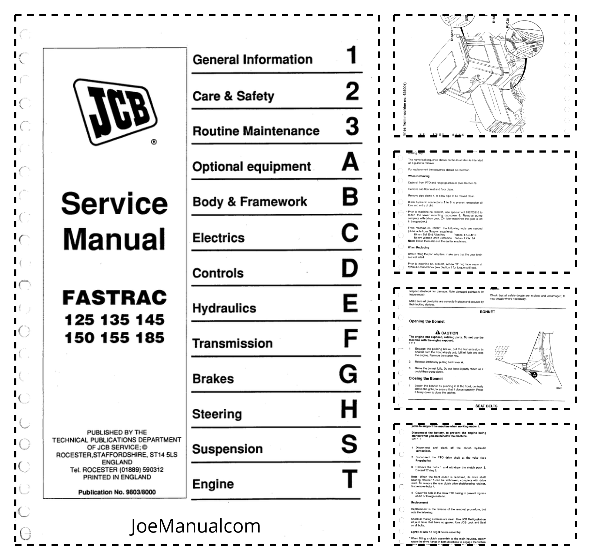 JCB 125 135 145 150 155 185 Fastrac Tractor Service Manual 9803/8000