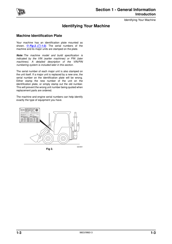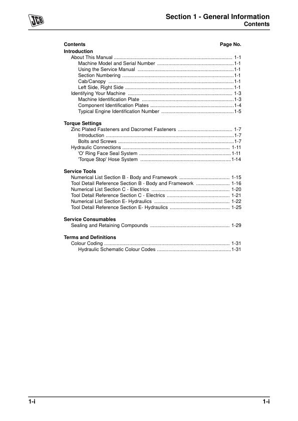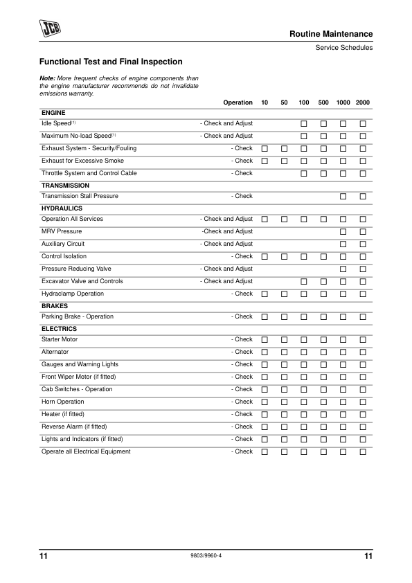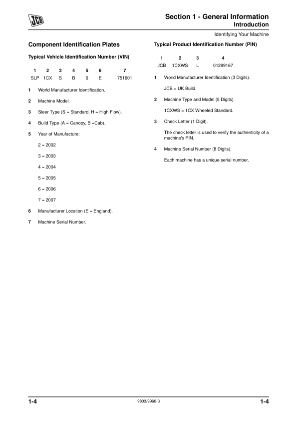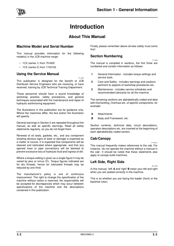 JCB 1CX Mini Backhoe Loader Service Manual 9803/9960