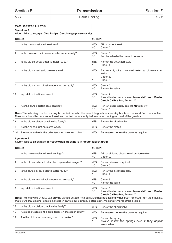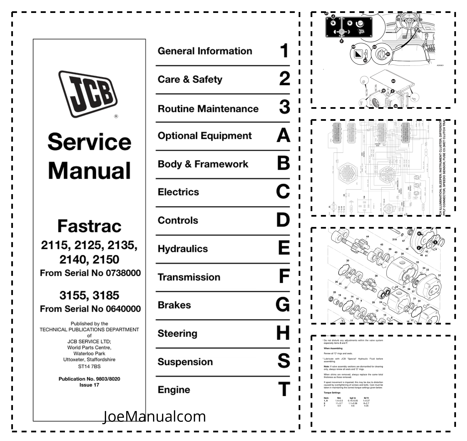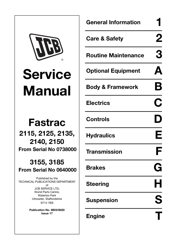 JCB 2115 2125 5135 5140 4150 3155 3185 Fastrac Tractro Service Manual 9803/8020