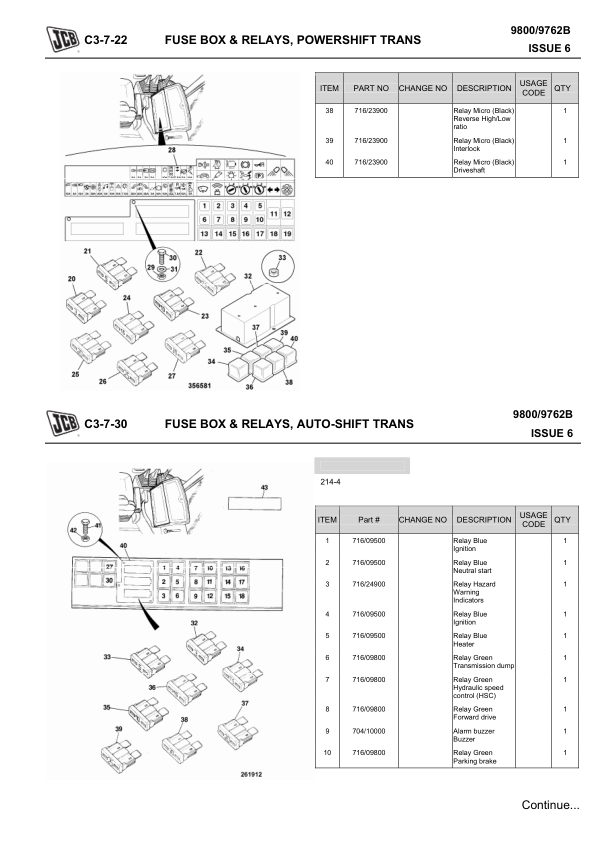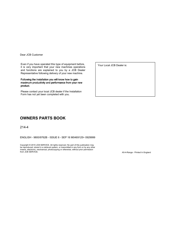 JCB 214 214 E Backhoe Loader Parts Catalog 046915-0929999 9800/9762 B
