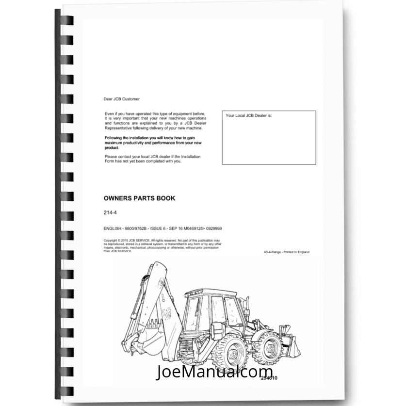 Be the first to review “JCB 214 214E Backhoe Loader Parts Catalog 046915-0929999 9800/9762B Printed Book”
