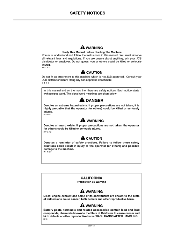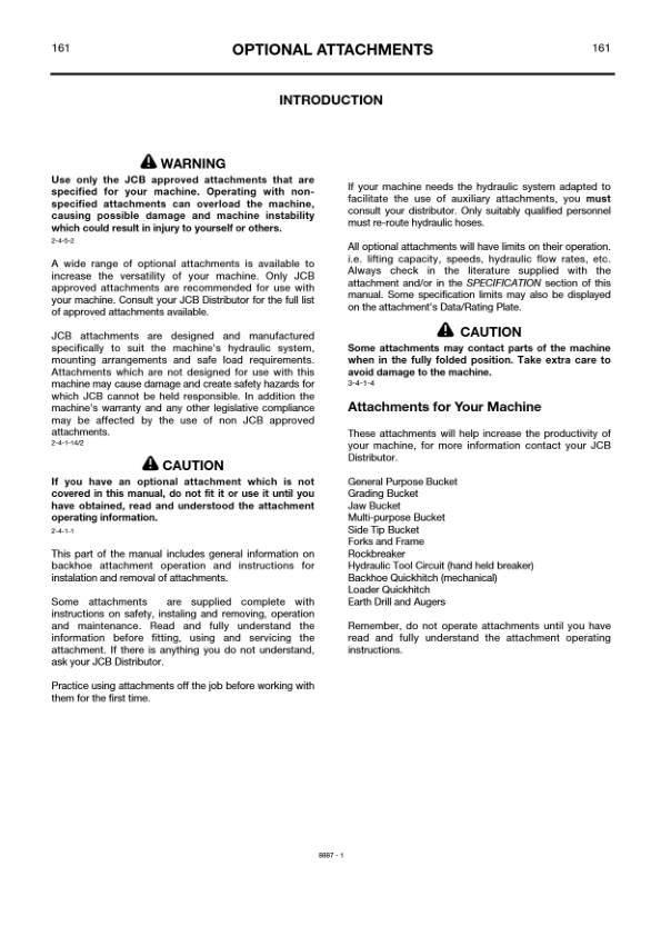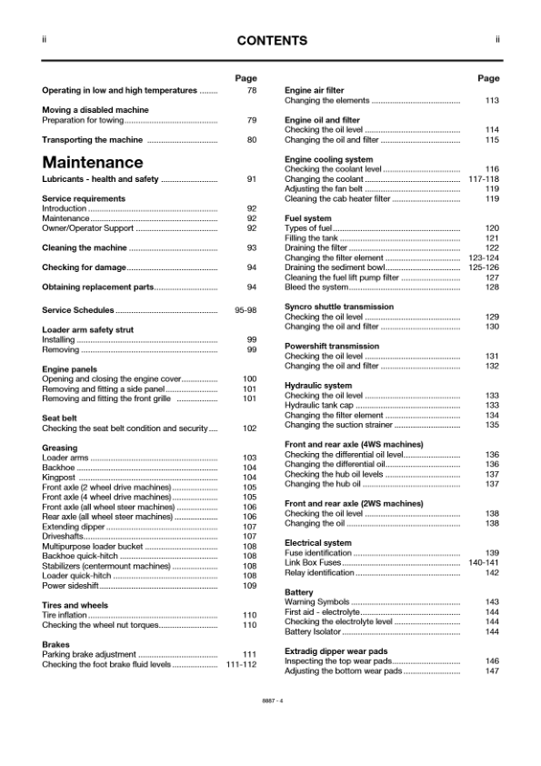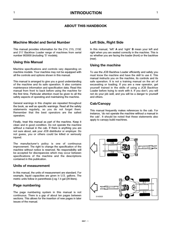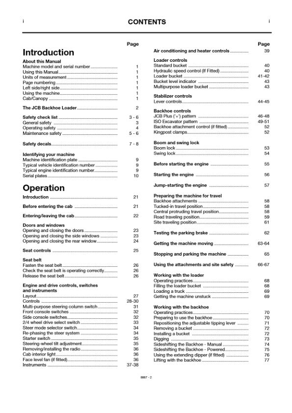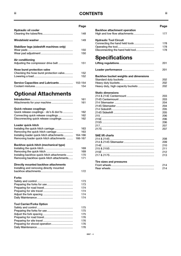 JCB 214 215 217 Backhoe Loader Operators Manual