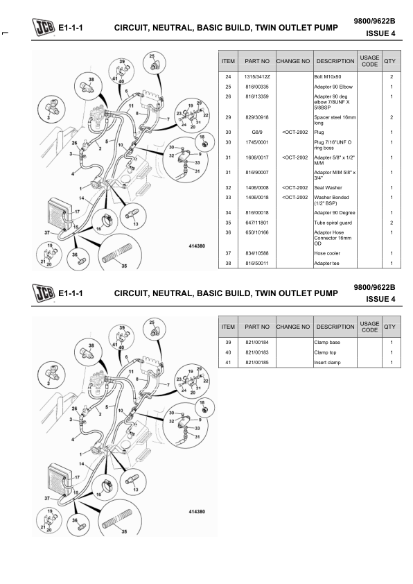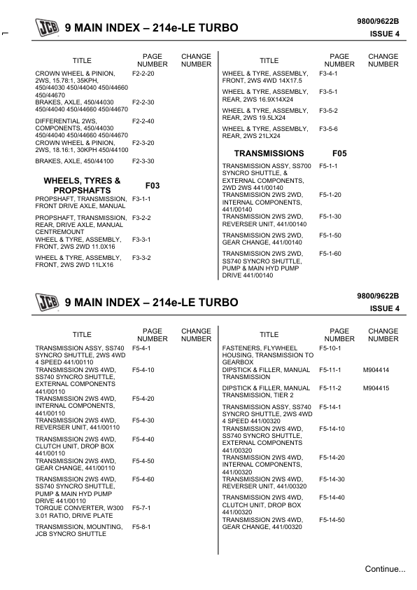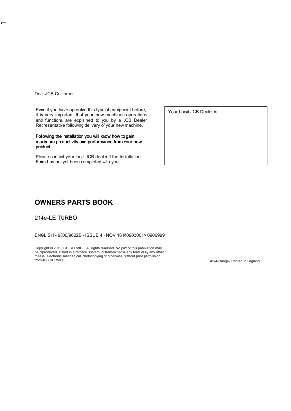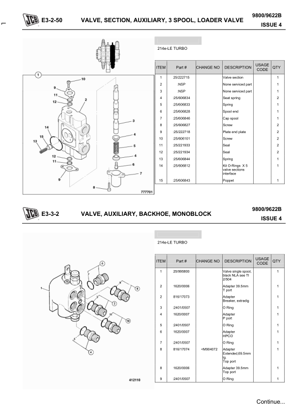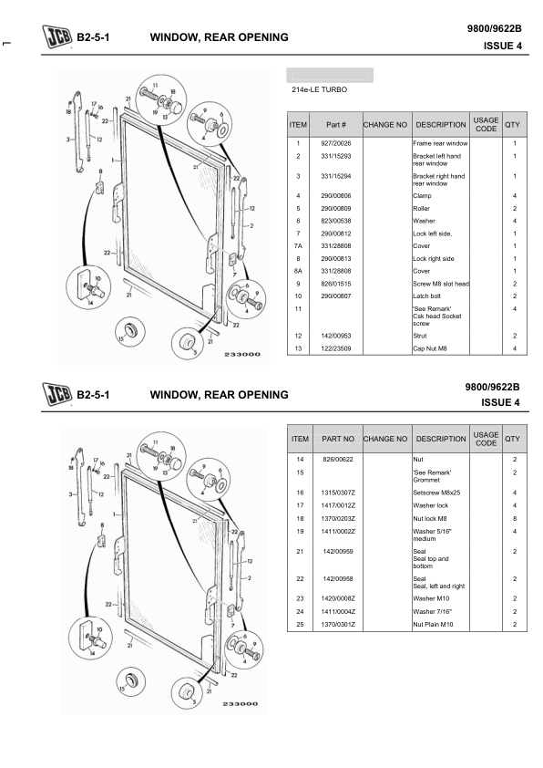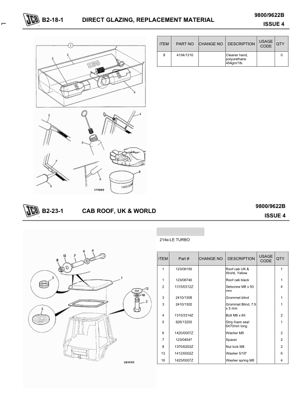 JCB 214E 214LE Backhoe Loader Parts Catalog 0903001-0906999 9800/9622B