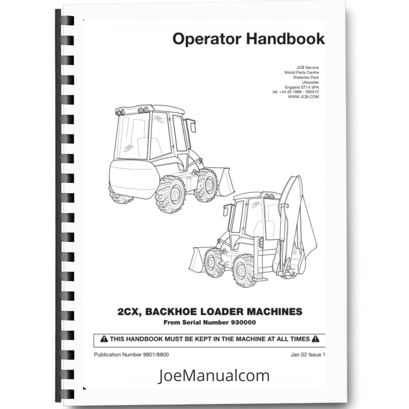The JCB 2CX Backhoe Loader Operator Manual 9801/8800 Printed Book provides detailed guidance on the safe operation, regular maintenance, and handling of the JCB 2CX model. This manual covers essential information such as operating procedures, control functions, safety guidelines, and daily inspections, including checks for lubrication, fluid levels, and filters. It also includes basic troubleshooting tips and technical specifications to ensure the machine’s optimal performance. This manual is a vital resource for operators to ensure the efficient and safe use of the JCB 2CX backhoe loader.