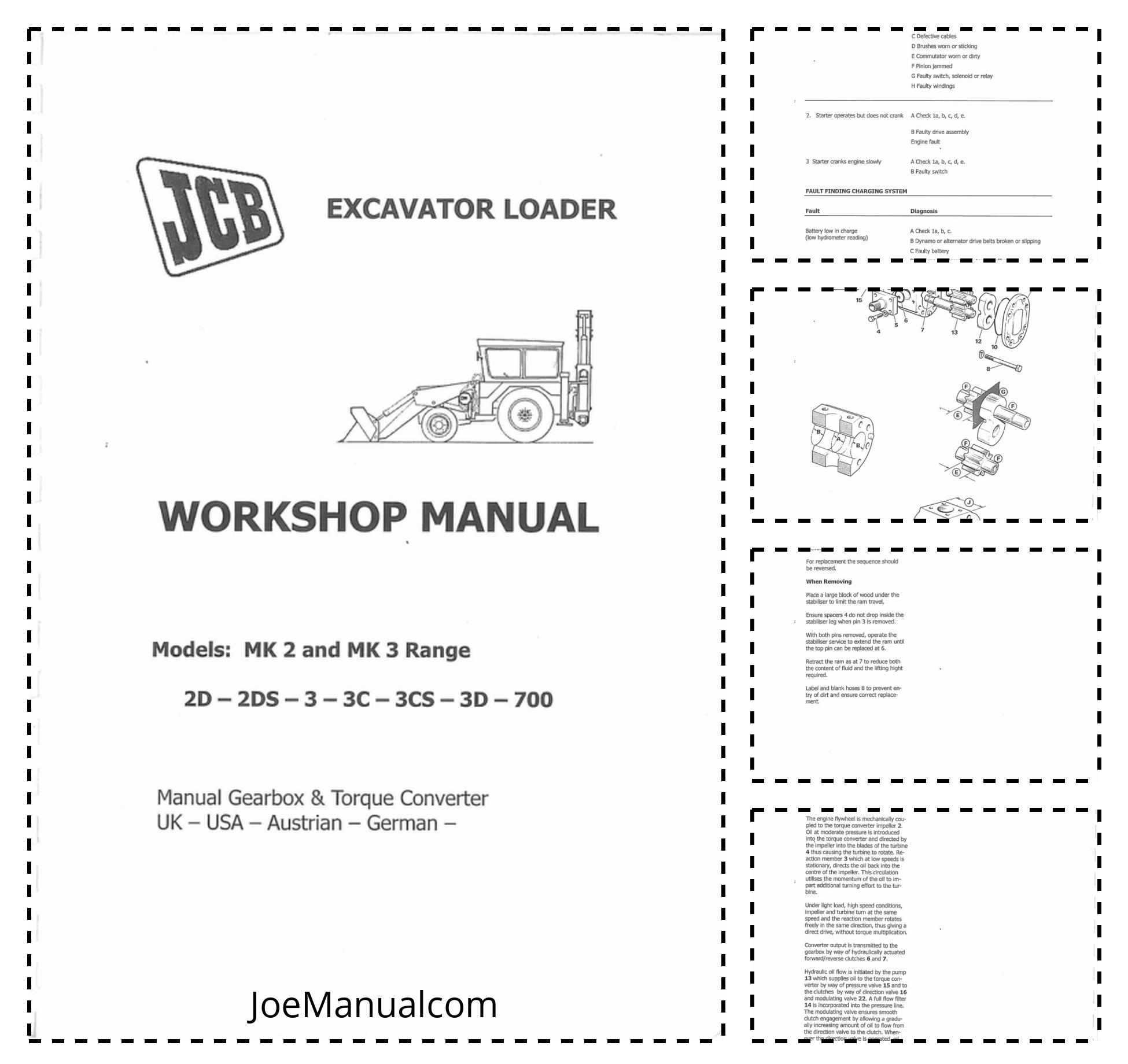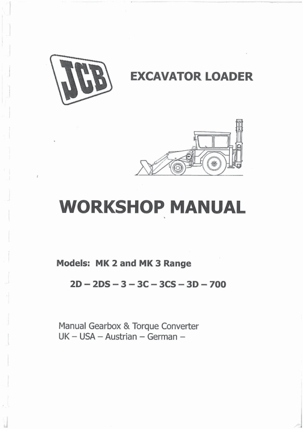JCB 2D 2DS 3 3C 3CS 3D 700 Backhoe Loader Workshop Manual 9803/1200