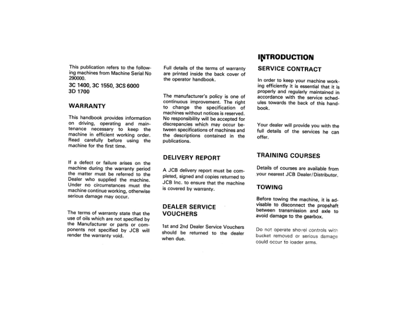 JCB 3C1400 3C1550 3CS 6000 3D1700 [-306000] Backhoe Loader Operators Manual