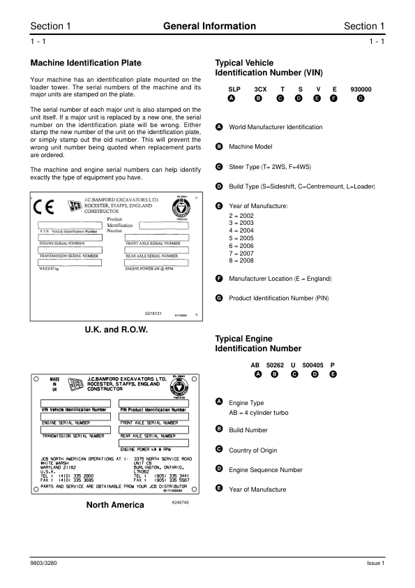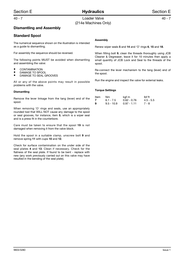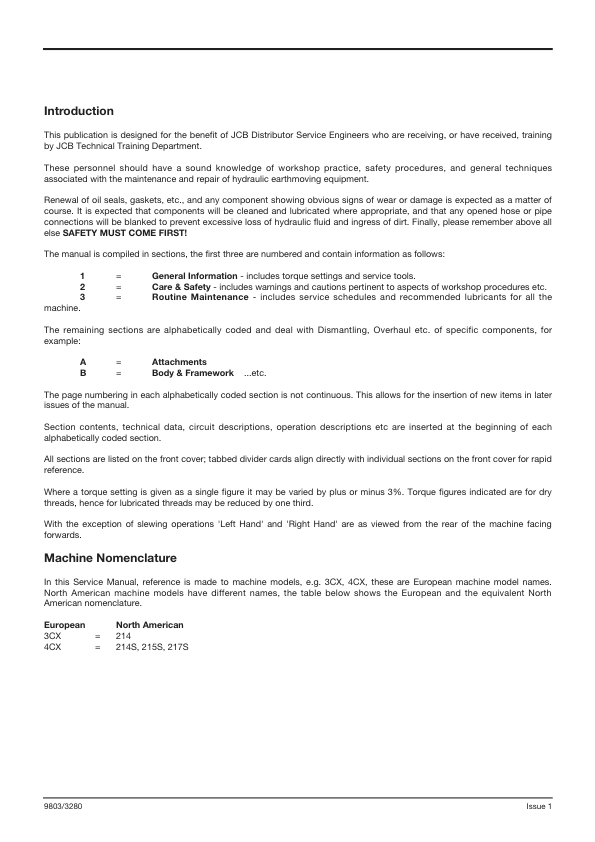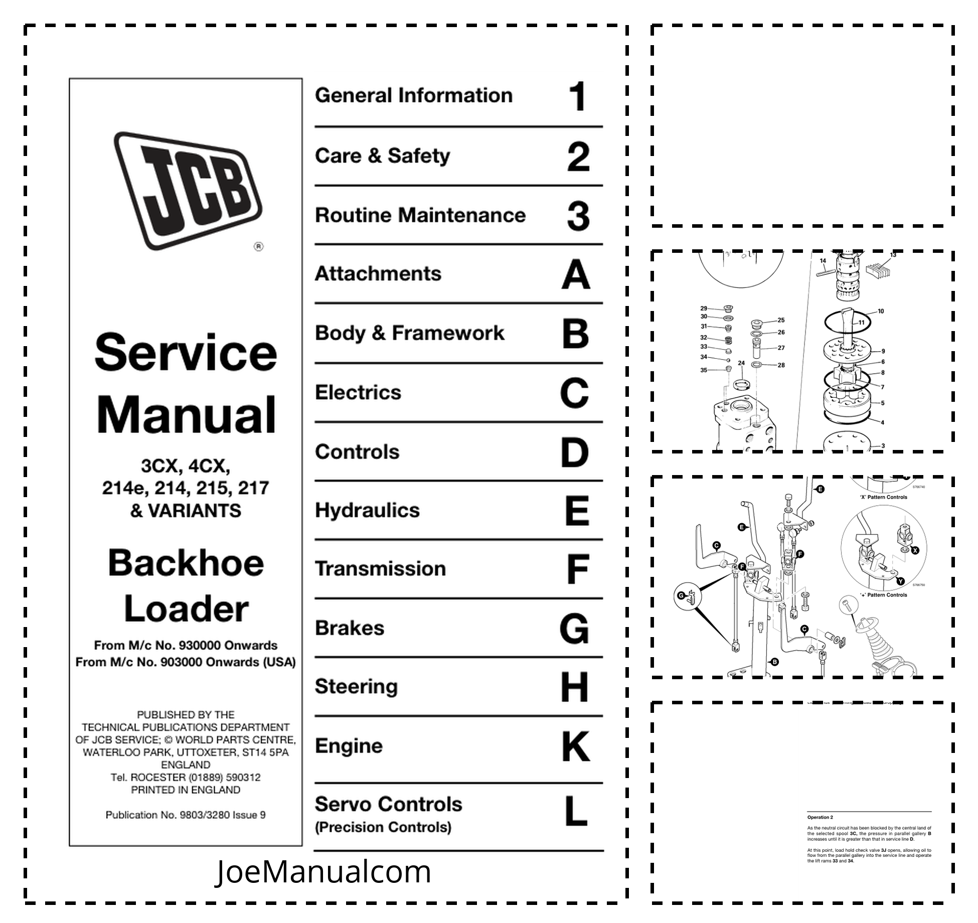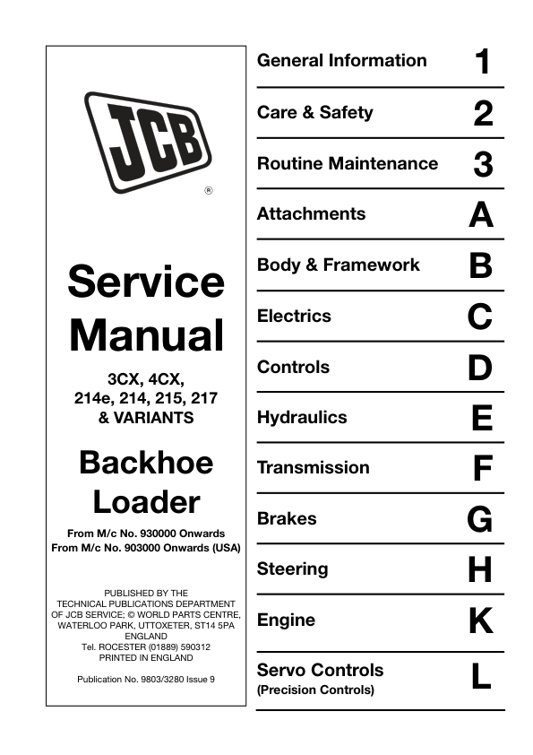 JCB 3CX 4CX 214e 214 215 217 Backhoe Loader Service Manual 9803/3280