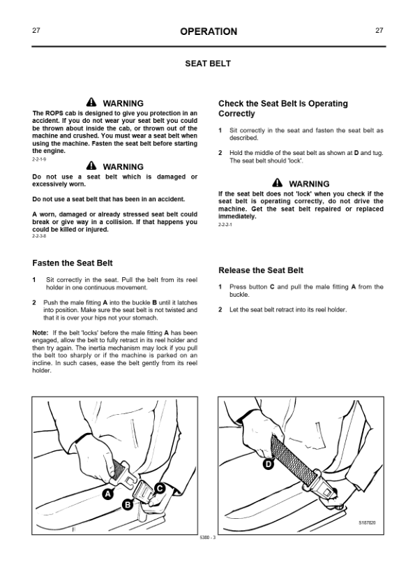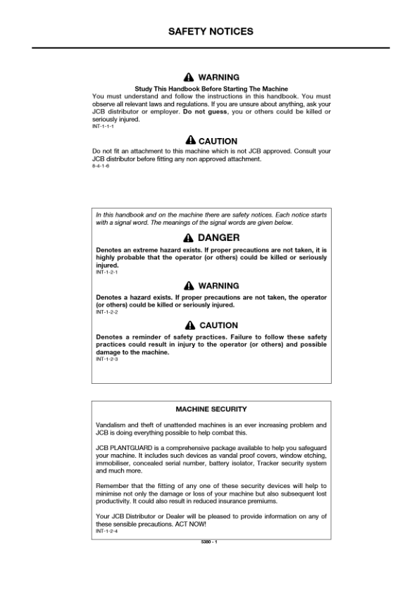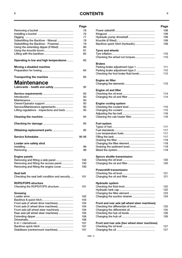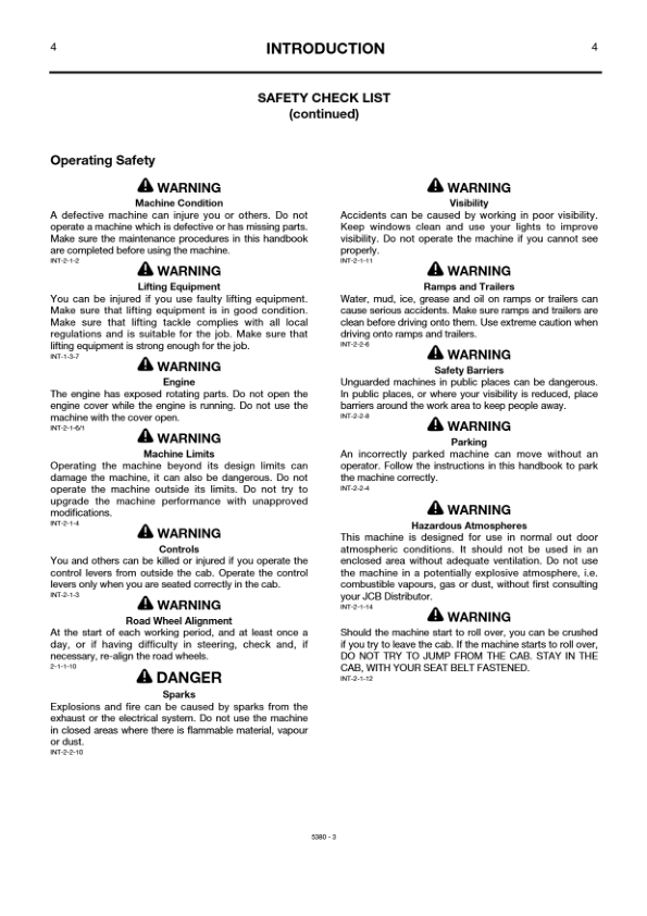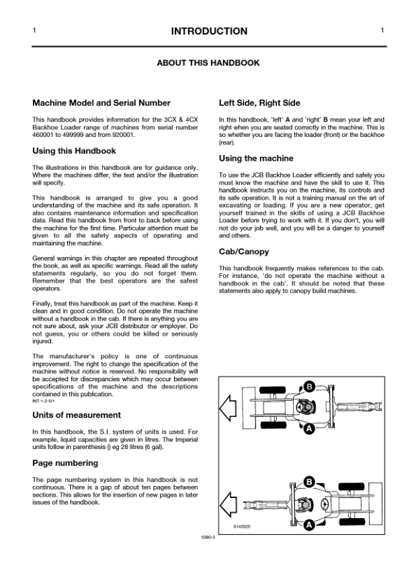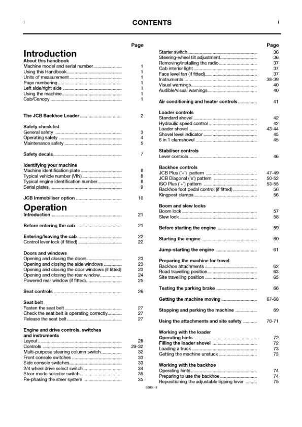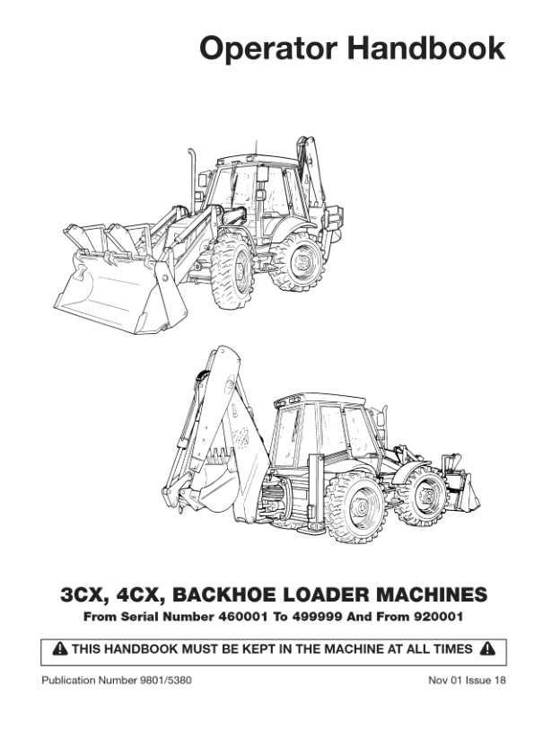 JCB 3CX 4CX 4C 4CN Backhoe Loader Operators Manual 460001-499999 920001-929999 ENG 9801/5380