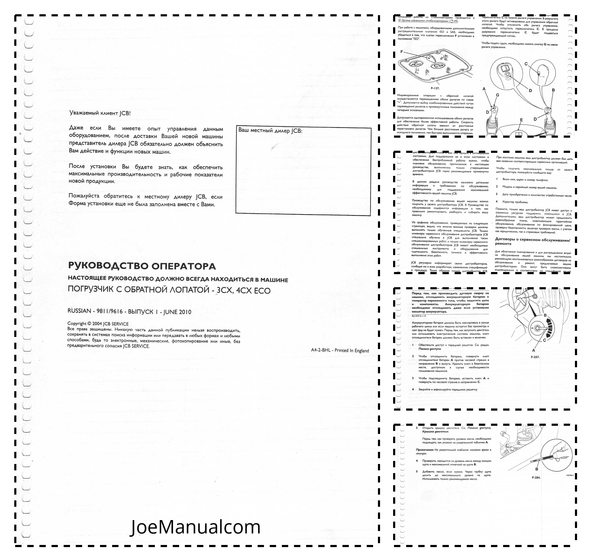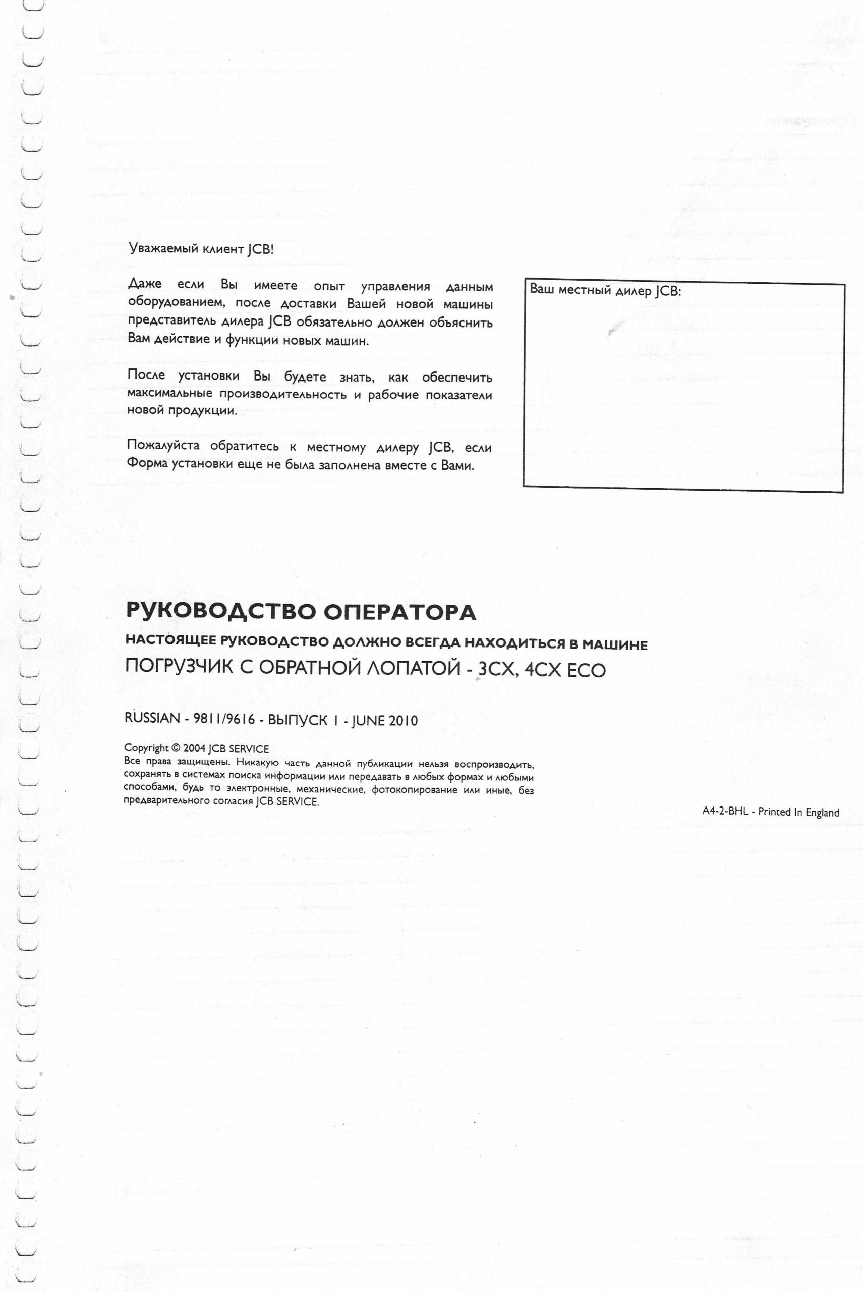 JCB 3CX 4CX ECO 2010 Backhoe Loader Operation Manual RU 9811/9616