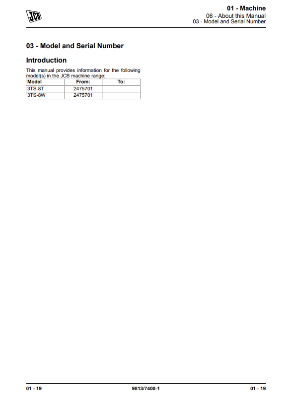 JCB 3TS-8T 3TS-8W Skidsteer Loader Service Manual 9813/7400
