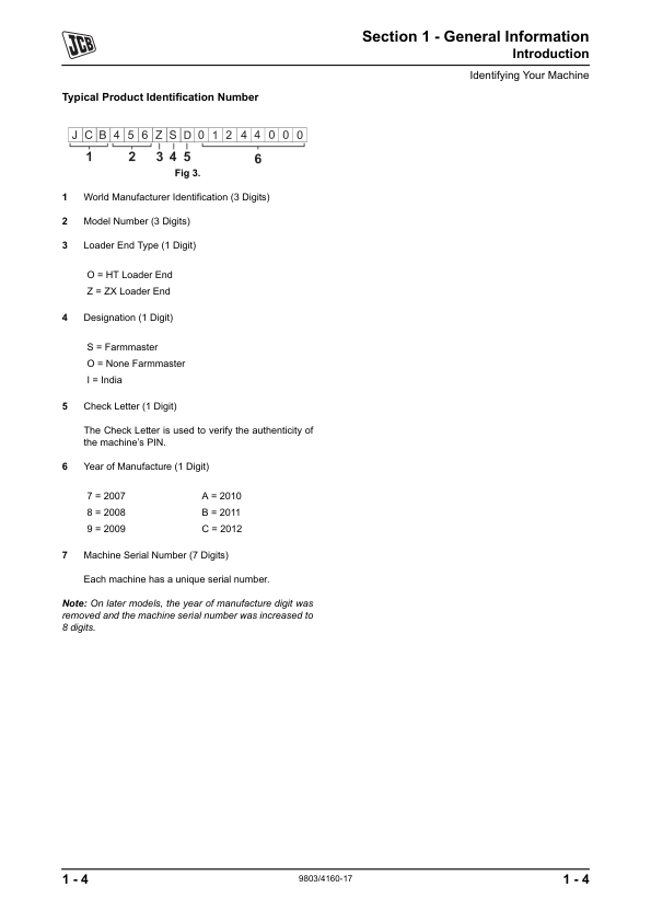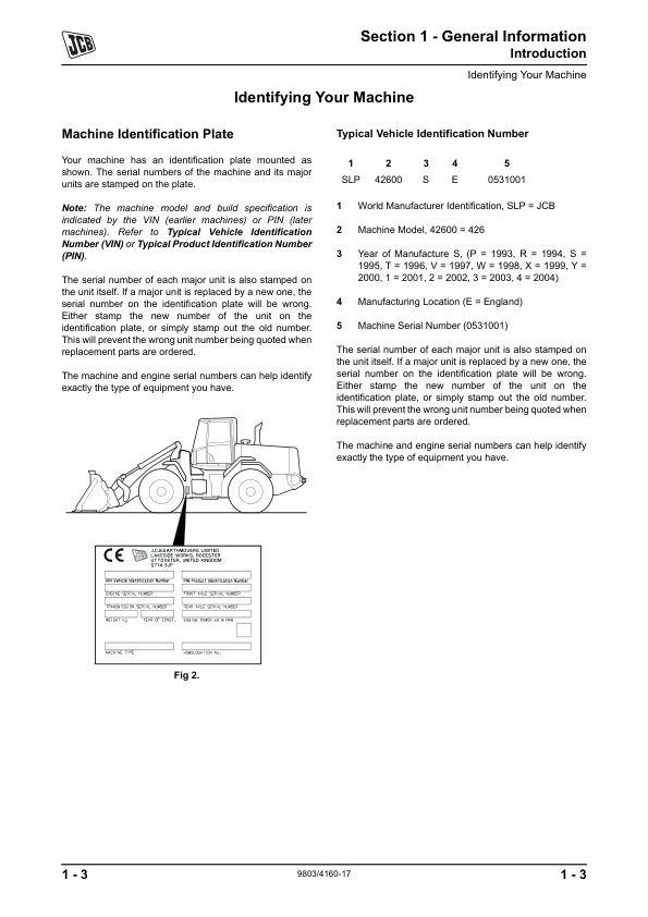 – 426 Wheeled Loading Shovel from machine serial number 531001