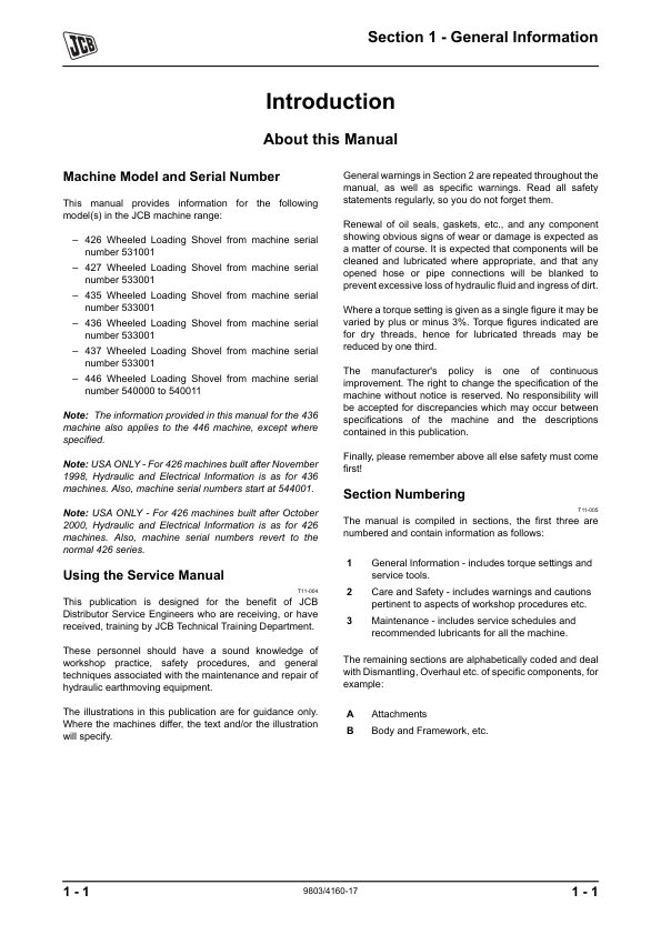 – 427 Wheeled Loading Shovel from machine serial number 533001
