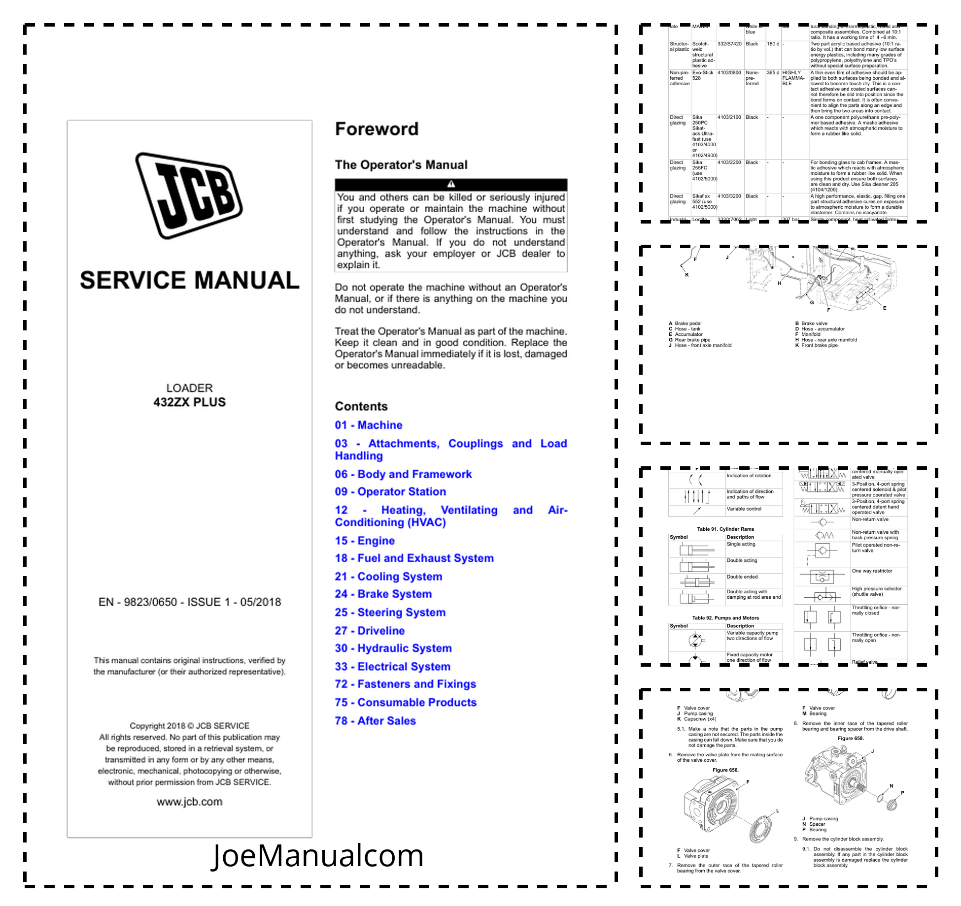 JCB 432ZX Plus Loader Service Manual 9823/0650