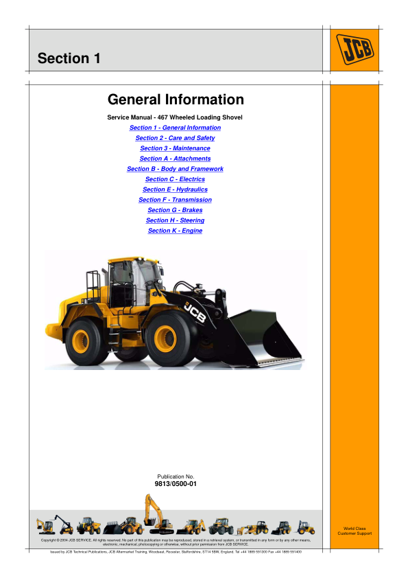 JCB 467 Wheeled Loading Shovel Service Manual 9813/0500-01 This service manual is a comprehensive resource designed for the maintenance and repair of the JCB 467 Wheeled Loading Shovel. It provides detailed technical specifications, operational guidelines, and step-by-step procedures for routine inspections, component replacement, and system diagnostics. The manual includes illustrations and diagrams to aid in identifying parts and understanding the machine’s mechanical and hydraulic systems. It serves as an essential tool for operators, technicians, and service personnel to ensure optimal performance, safety, and longevity of the equipment. By following the instructions outlined in this manual, users can efficiently troubleshoot common issues, perform scheduled maintenance, and maintain the shovel in accordance with manufacturer standards. The document is organized for easy reference, covering everything from initial setup to advanced servicing techniques, making it a valuable asset for anyone responsible for the upkeep of this heavy machinery unit.
