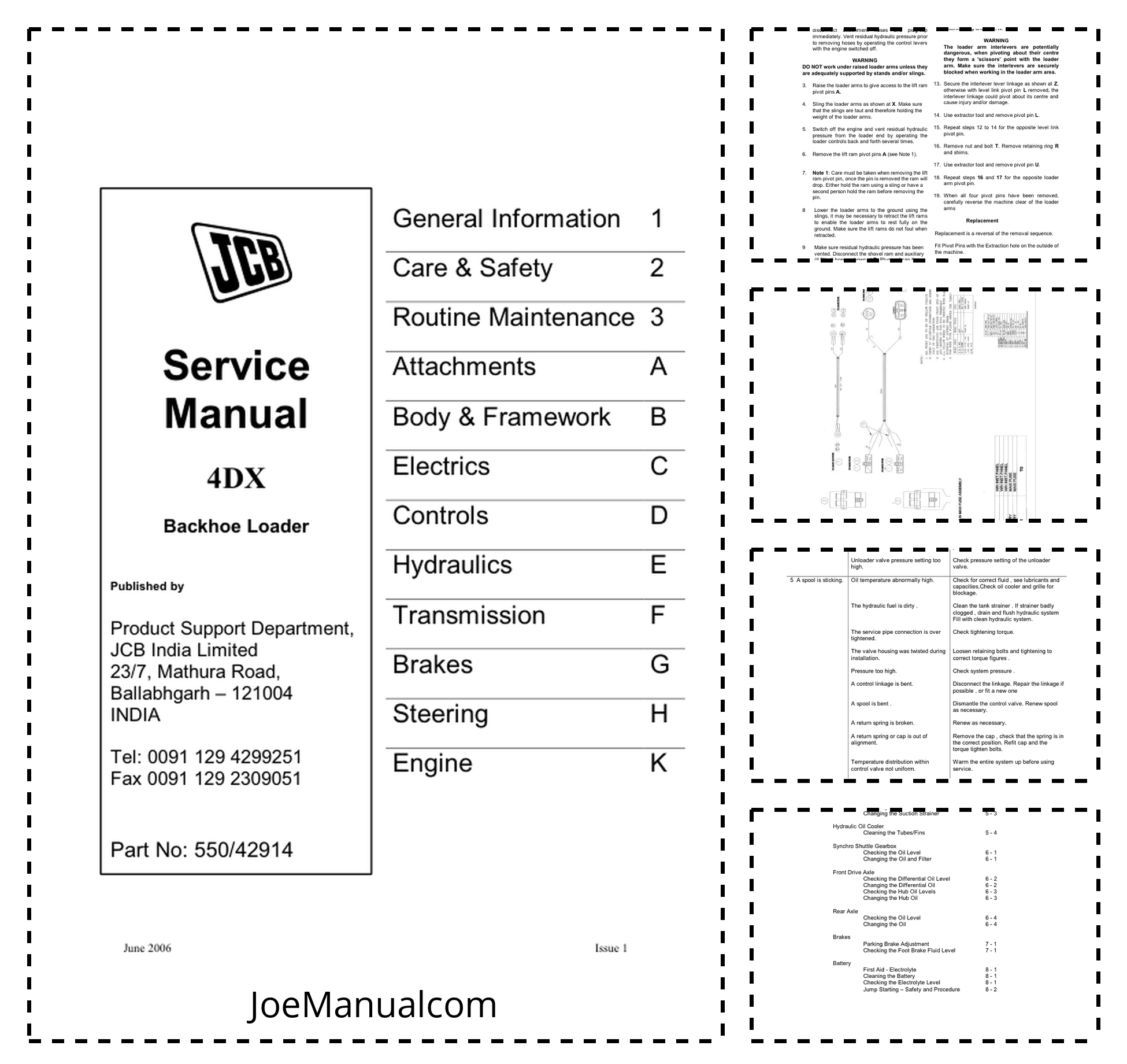 JCB 4DX Backhoe Loader Service Manual 550-42914