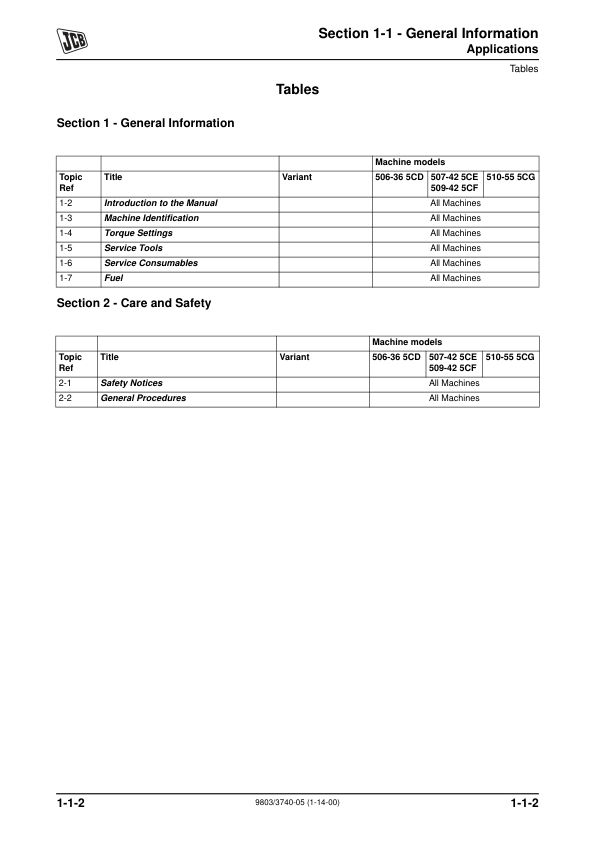 JCB 506-36 507-42 509-42 510-56 Telescopic Handler Service Manual 9803/3740