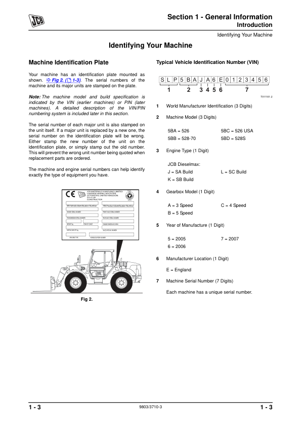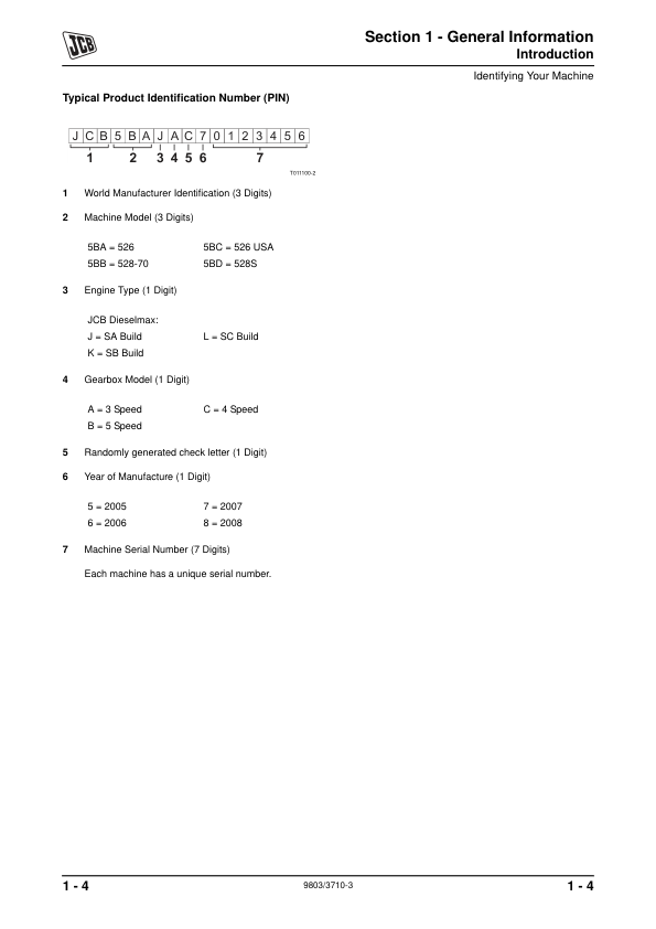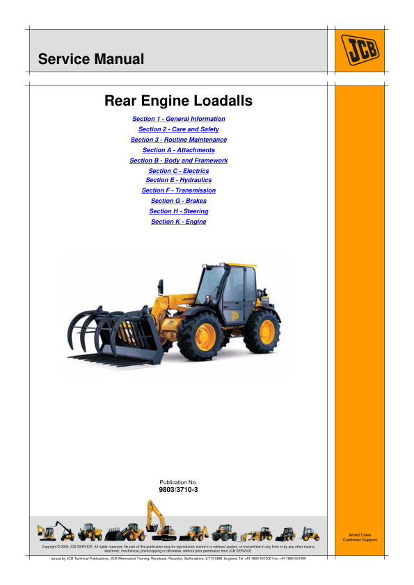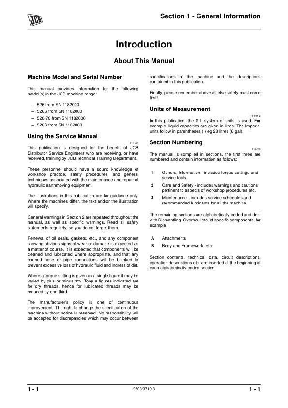 JCB 526 526S 528-70 528S Rear Engine Loadall Service Manual 9803/3710