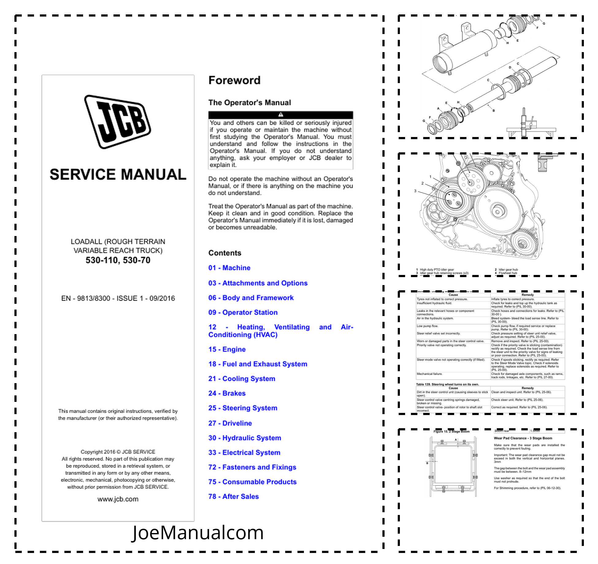 JCB 530-110 530-70 Telehandlers Loadall Service Manual 9813/8300