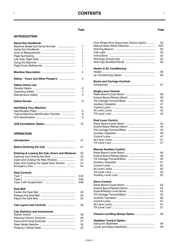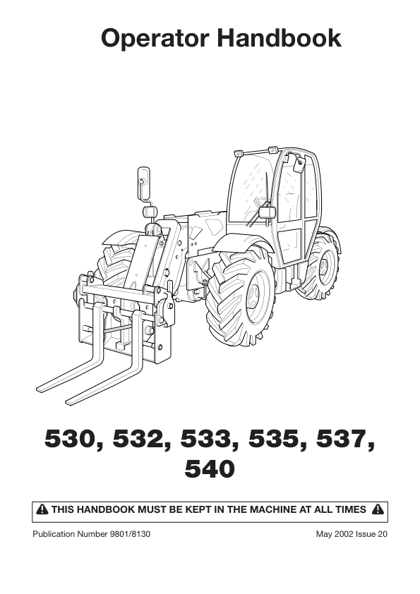 The JCB 530, 532, 533, 535, 537 Telehandler Operator Manual provides essential guidelines for the safe operation, maintenance, and handling of these telehandler models. It includes detailed instructions on machine controls, safe operating procedures, and daily maintenance tasks such as fluid checks, lubrication, and system inspections. The manual also covers troubleshooting tips, technical specifications, and best practices to ensure optimal performance, efficiency, and longevity of the telehandlers. This manual is crucial for operators to ensure safe and efficient use of the JCB 530, 532, 533, 535, and 537 telehandlers.