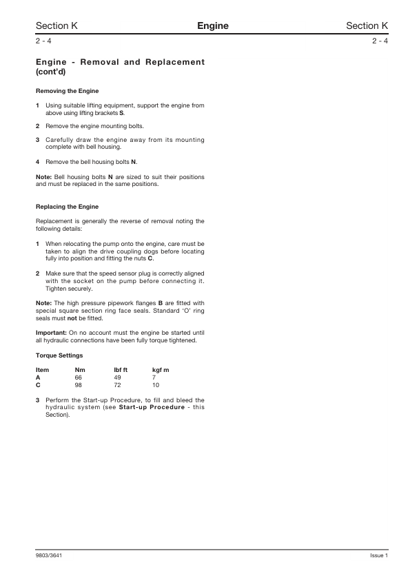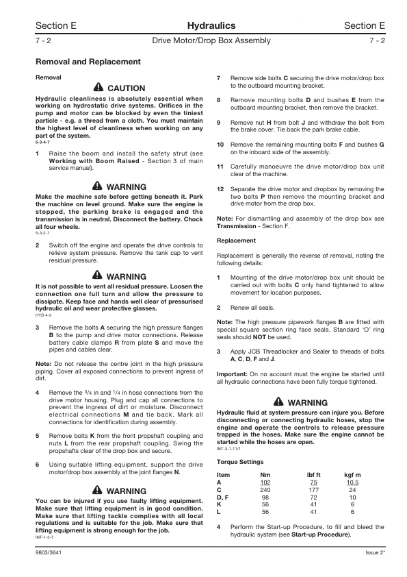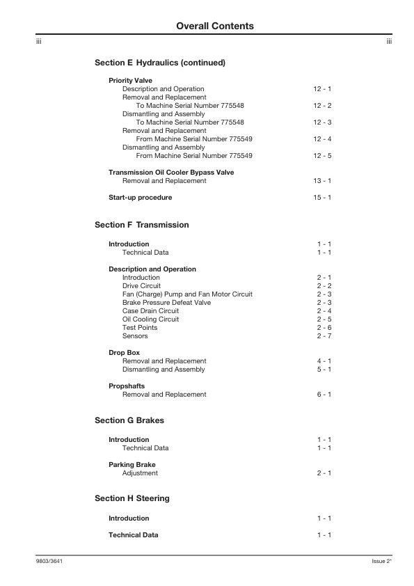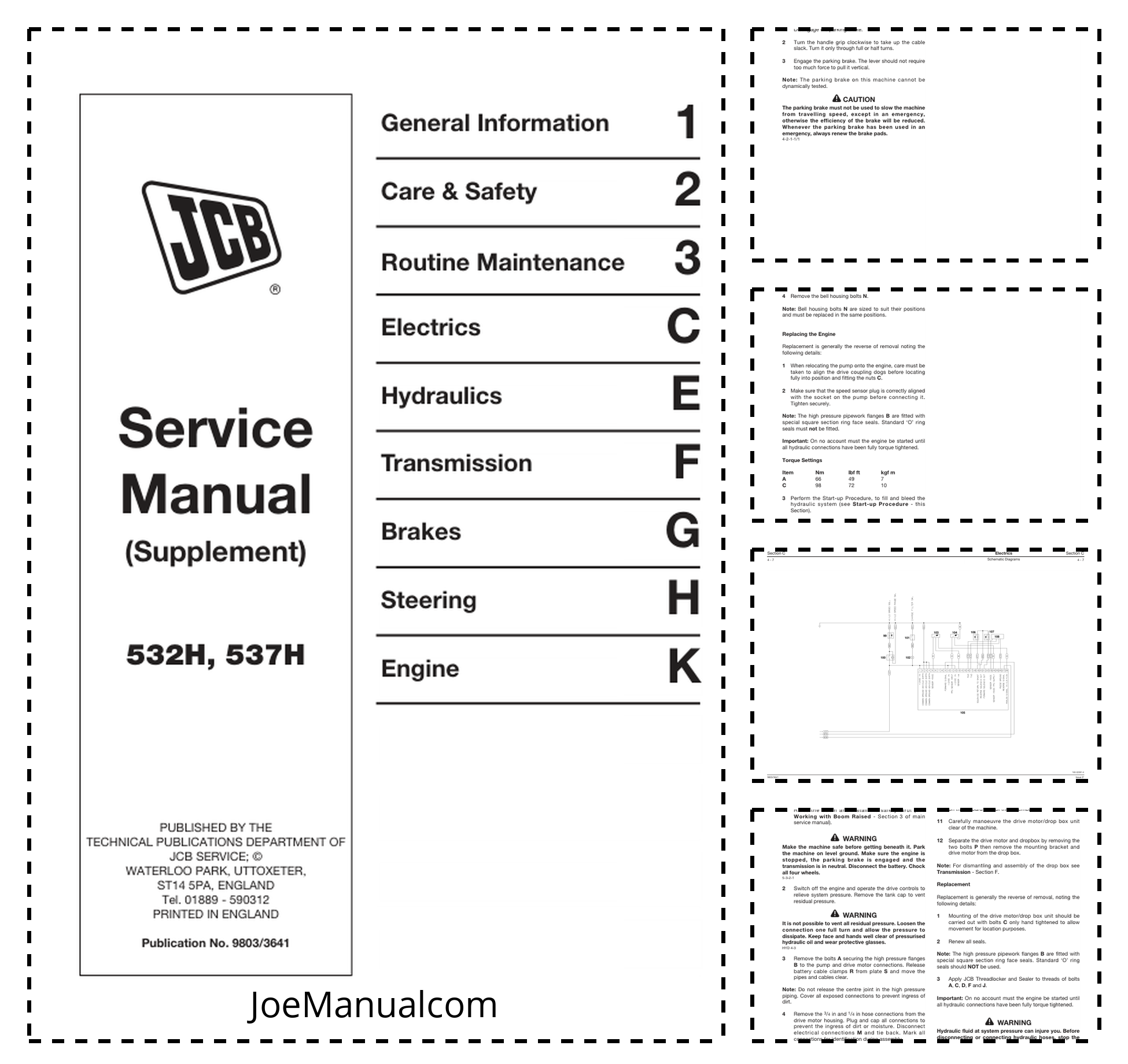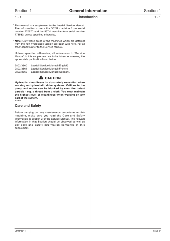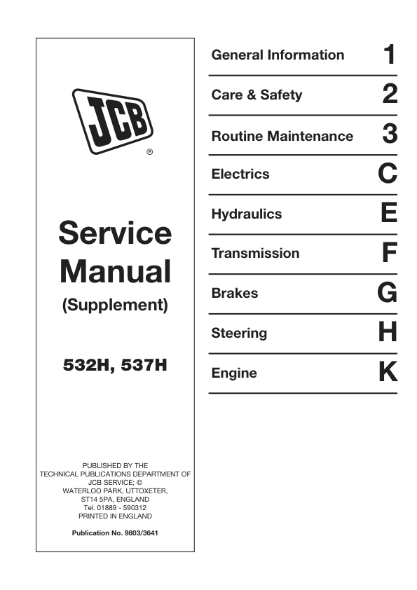 JCB 532H 537H Loadall Service Manual Supplement 9803/3641