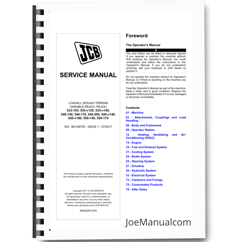 2 reviews for JCB 533-105 535-v125 535-v140 540-140 540-170 540-200 540-v140 540-v180 550-140 550-170 Telehandler Service Manual 9813/8750 Printed Book