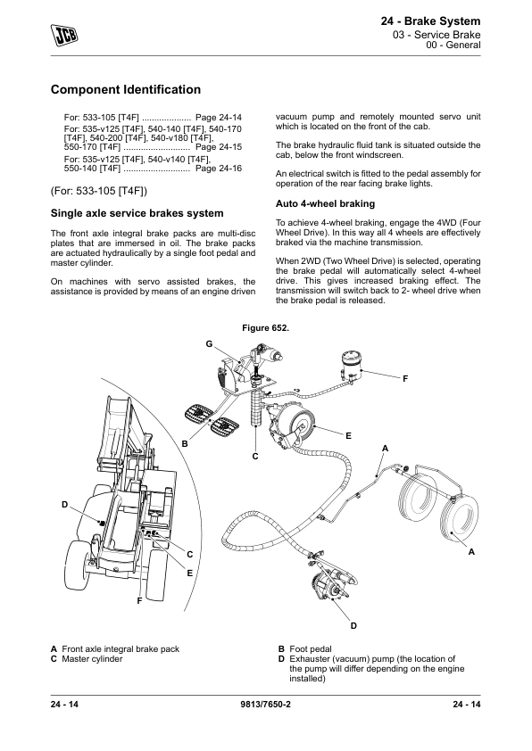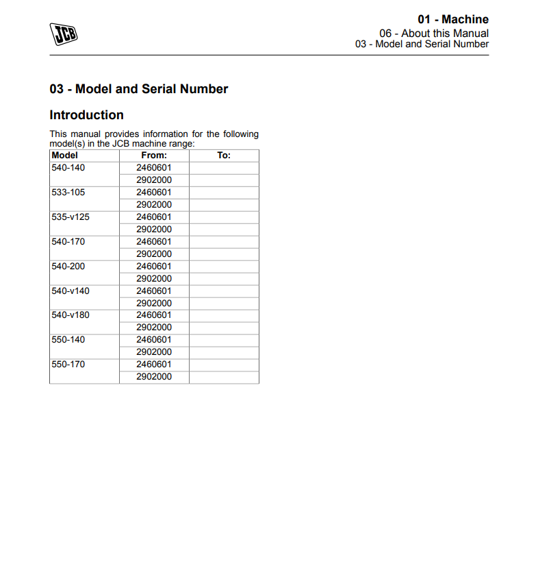 JCB 533-105 535-v125 540 550 Telehandlers Loadall Service Manual 9813/7650