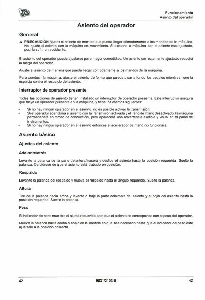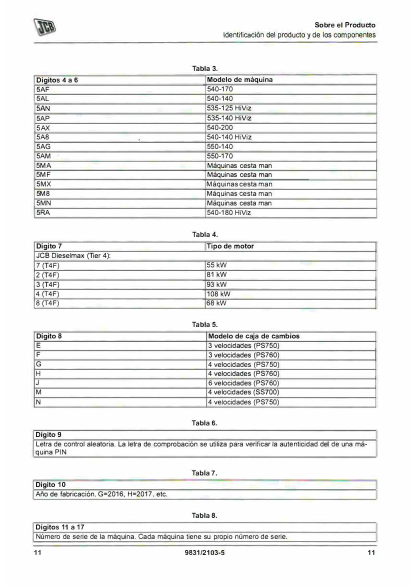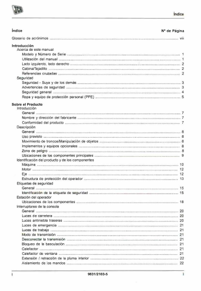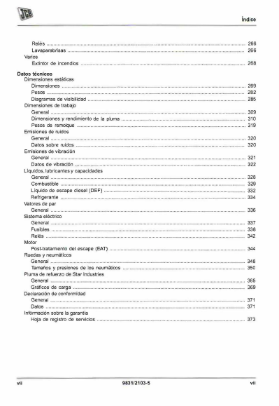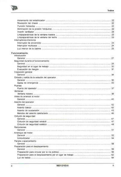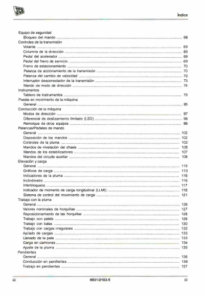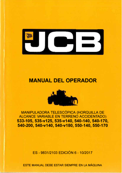 JCB 533 535 540 550 Telescopic Handler Operator Manual 9831/2103