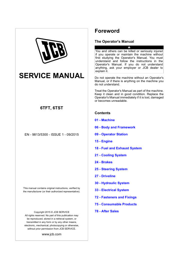 JCB 6TFT 6TST Dumper Service Manual 9813/5300