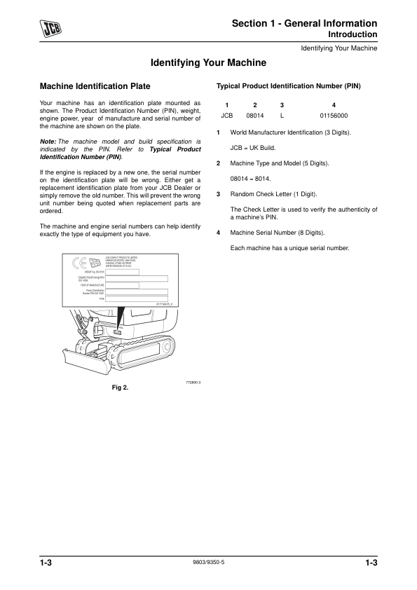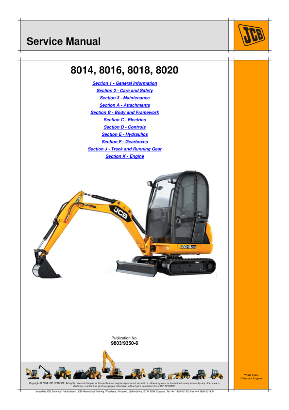 JCB 8014 8016 8018 8020 Mini Excavator Service Manual 9803/9350