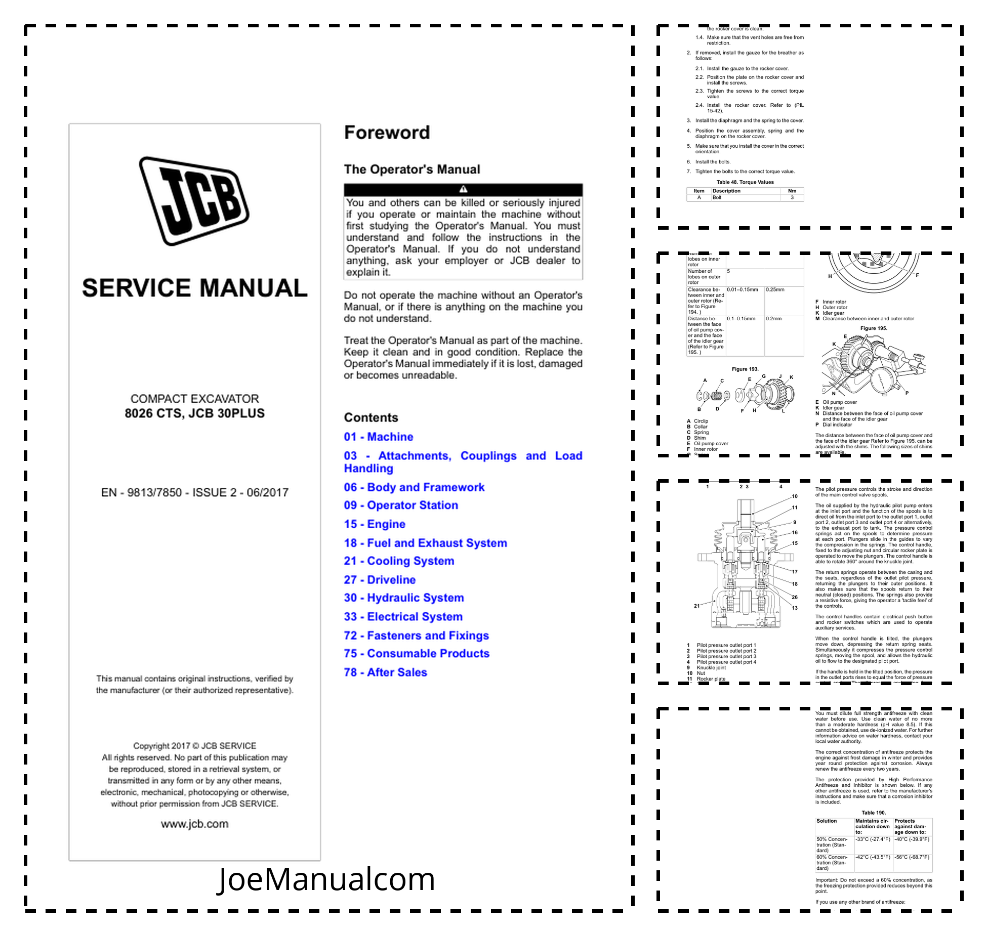 JCB 8026 CTS JCB 30PLUS Compact Excavator Service Manual 9813/7850