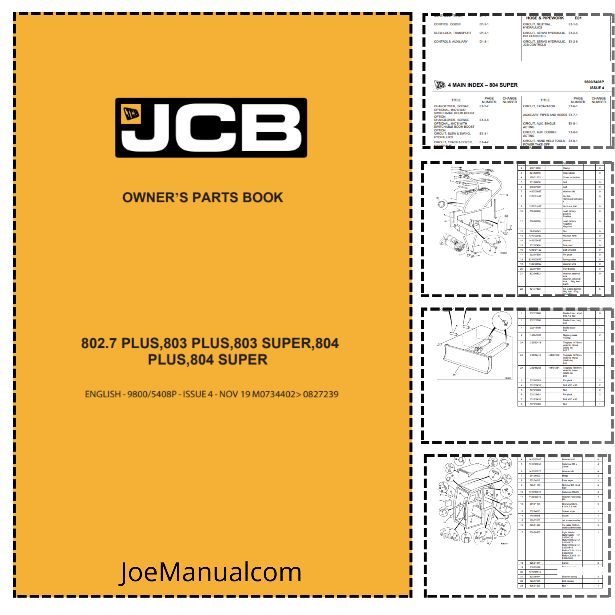 JCB 804 Super 802.7 803 804 PLUS 803 Super Excavator Parts Catalog 9800/5408P