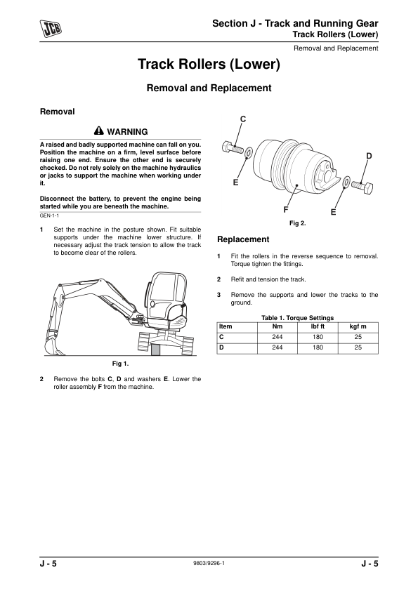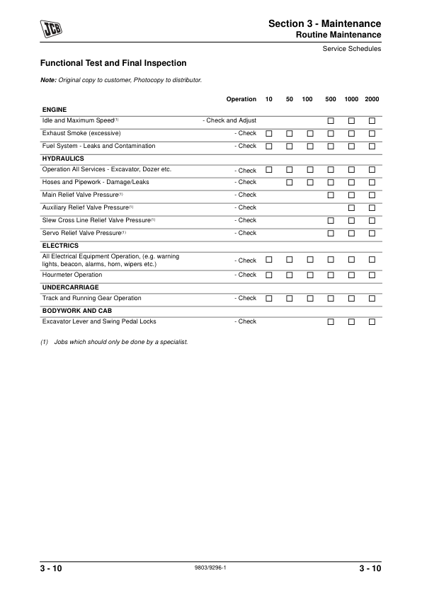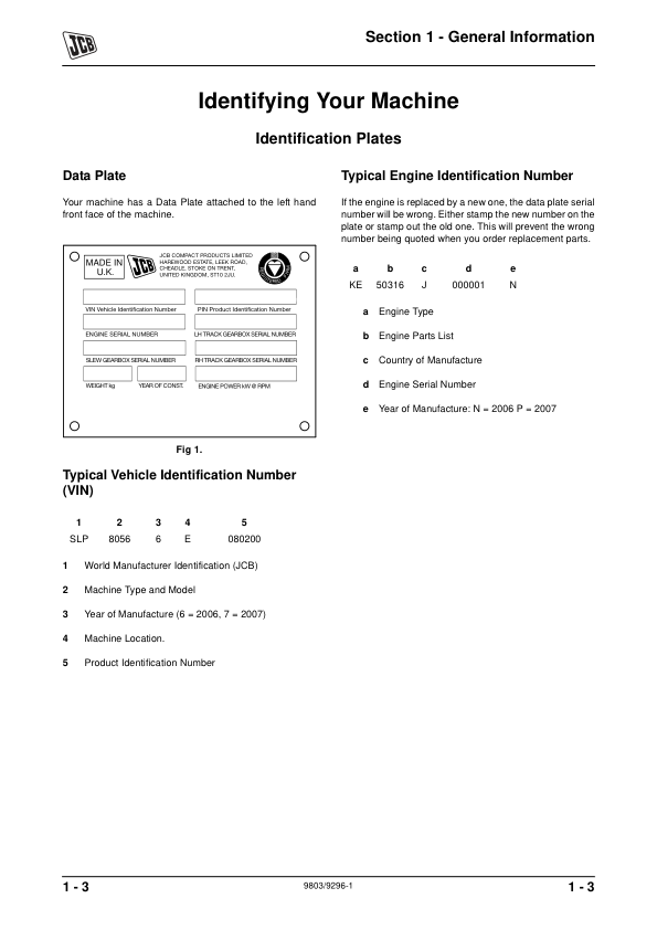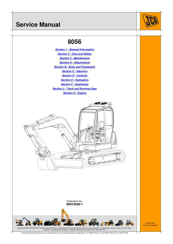 JCB 8056 Mini Excavator Service Manual 9803/9296-1