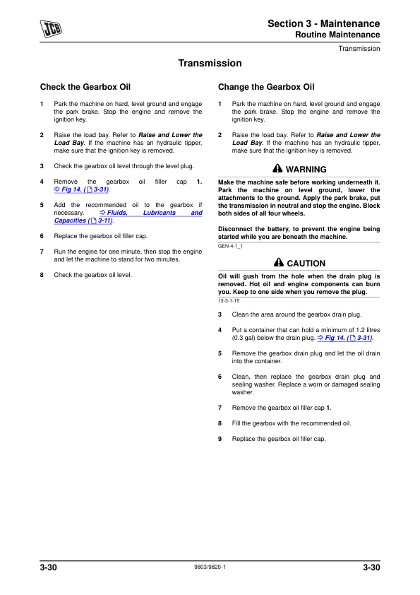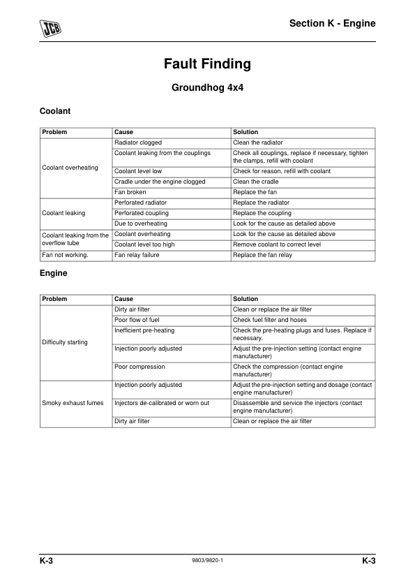 JCB Groundhog 4×4 Utility Vehicle Service Manual 9803/9820