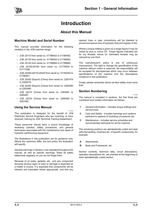JCB JS Auto Range Tracked Excavator with JCB Engine Service Manual 9813/1000 This comprehensive package includes a robust JCB JS Auto Range Tracked Excavator designed for demanding construction and mining applications, paired with the official JCB Engine Service Manual 9813/1000, which provides detailed technical guidance for maintenance, repair, and operation. The excavator features advanced tracked mobility for enhanced stability and performance on uneven or challenging terrains, while its powerful engine ensures efficient digging and lifting capabilities. The accompanying service manual offers step-by-step instructions for routine servicing, troubleshooting common issues, and understanding the machine’s specifications, making it an essential tool for operators and technicians seeking to maximize uptime and reliability. Together, this set delivers a reliable solution for heavy-duty earthmoving tasks, supported by authoritative technical documentation to ensure optimal maintenance and long-term operational efficiency.