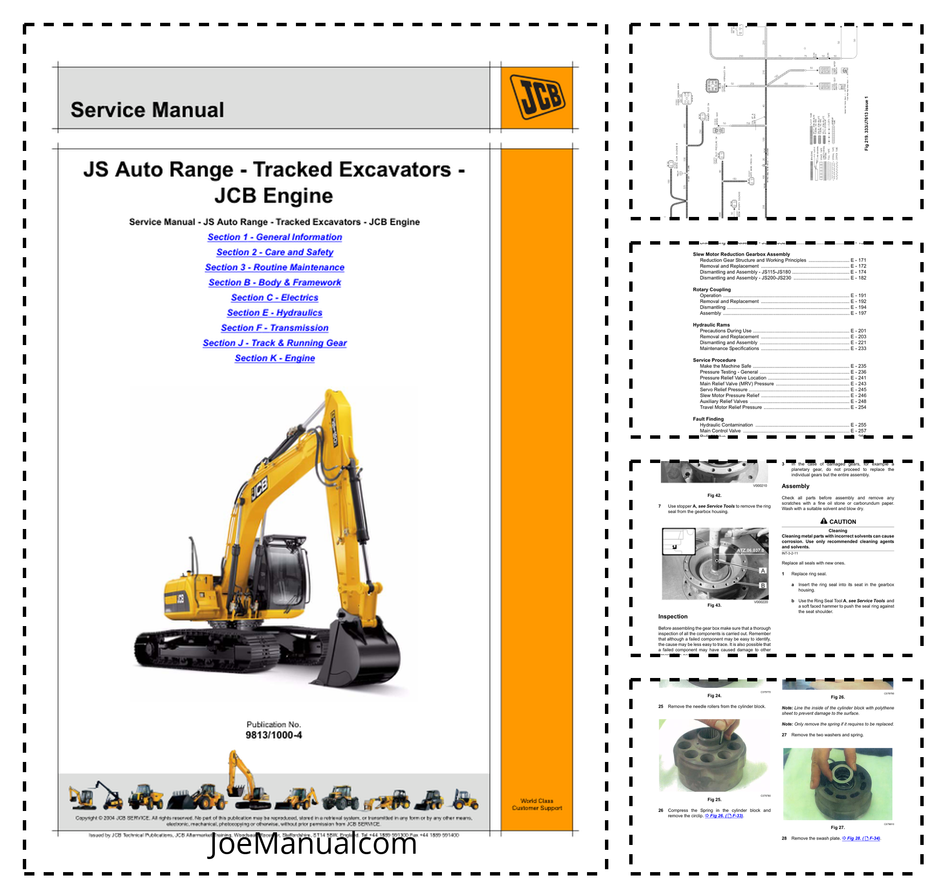 JCB JS Auto Range Tracked Excavator with JCB Engine Service Manual 9813/1000
