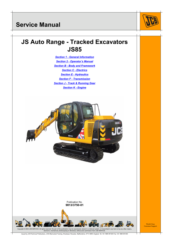 JCB JS Auto Range Tracked Excavators JS85 Service Manual 9813/3750-01