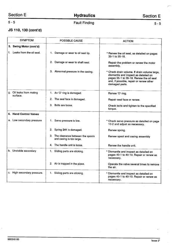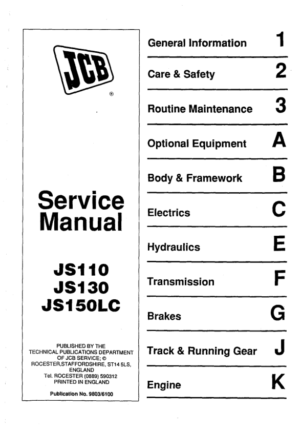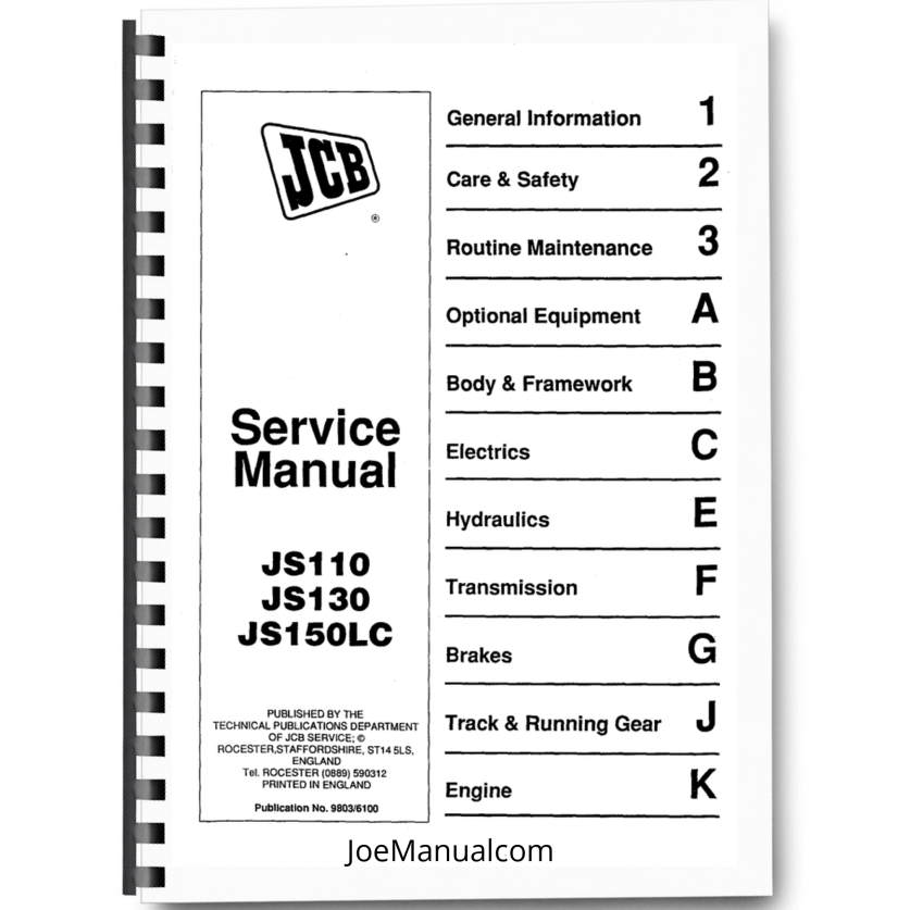 JCB JS110 JS130 JS150LC Service Manual 9803/6100 Printed Book