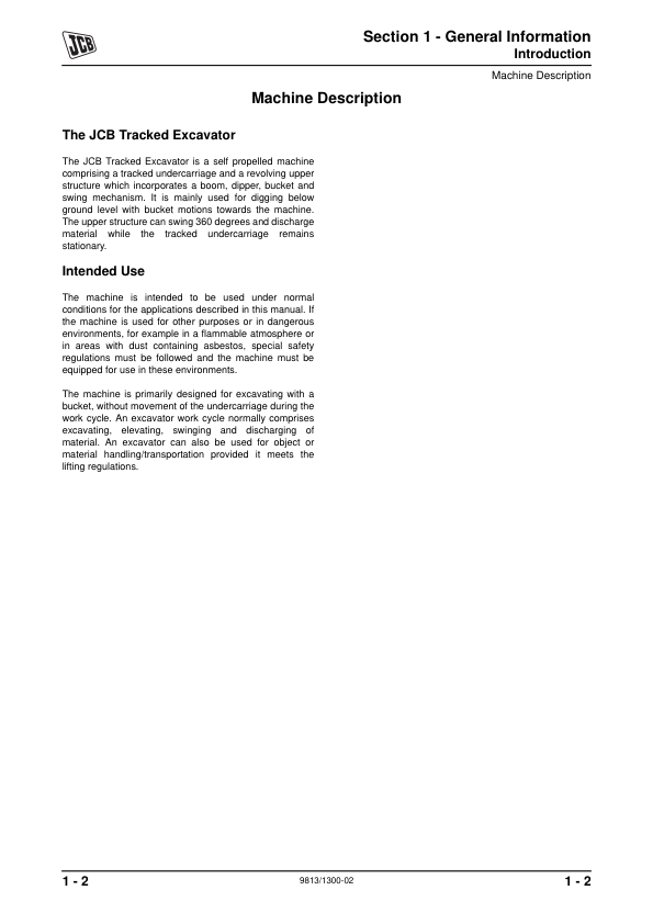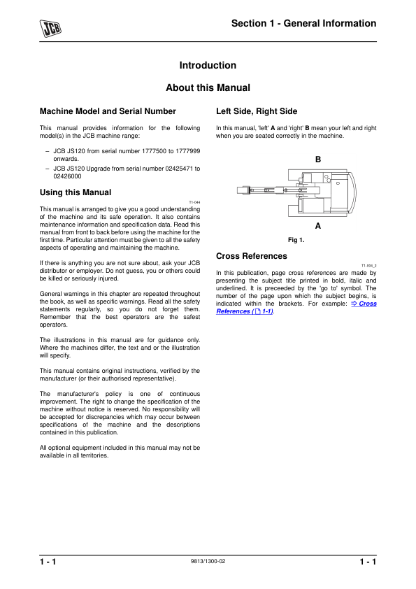 JCB JS120 Excavator Service Manual 9813/1300 This comprehensive service manual is specifically designed for the JCB JS120 excavator model 9813/1300 and provides detailed technical information essential for maintenance, repair, and operational guidance. It includes step-by-step procedures for routine inspections, component replacement, and system diagnostics, ensuring users can efficiently service the equipment while adhering to manufacturer specifications. The manual covers critical aspects such as hydraulic system operation, electrical schematics, engine maintenance, and troubleshooting common issues, making it an invaluable resource for operators, technicians, and service providers. Its structured format and precise instructions support both preventive and corrective maintenance, helping to maximize machine performance and reliability. Additionally, it offers insights into safety protocols and compliance requirements, ensuring safe and effective handling of the excavator throughout its lifecycle.