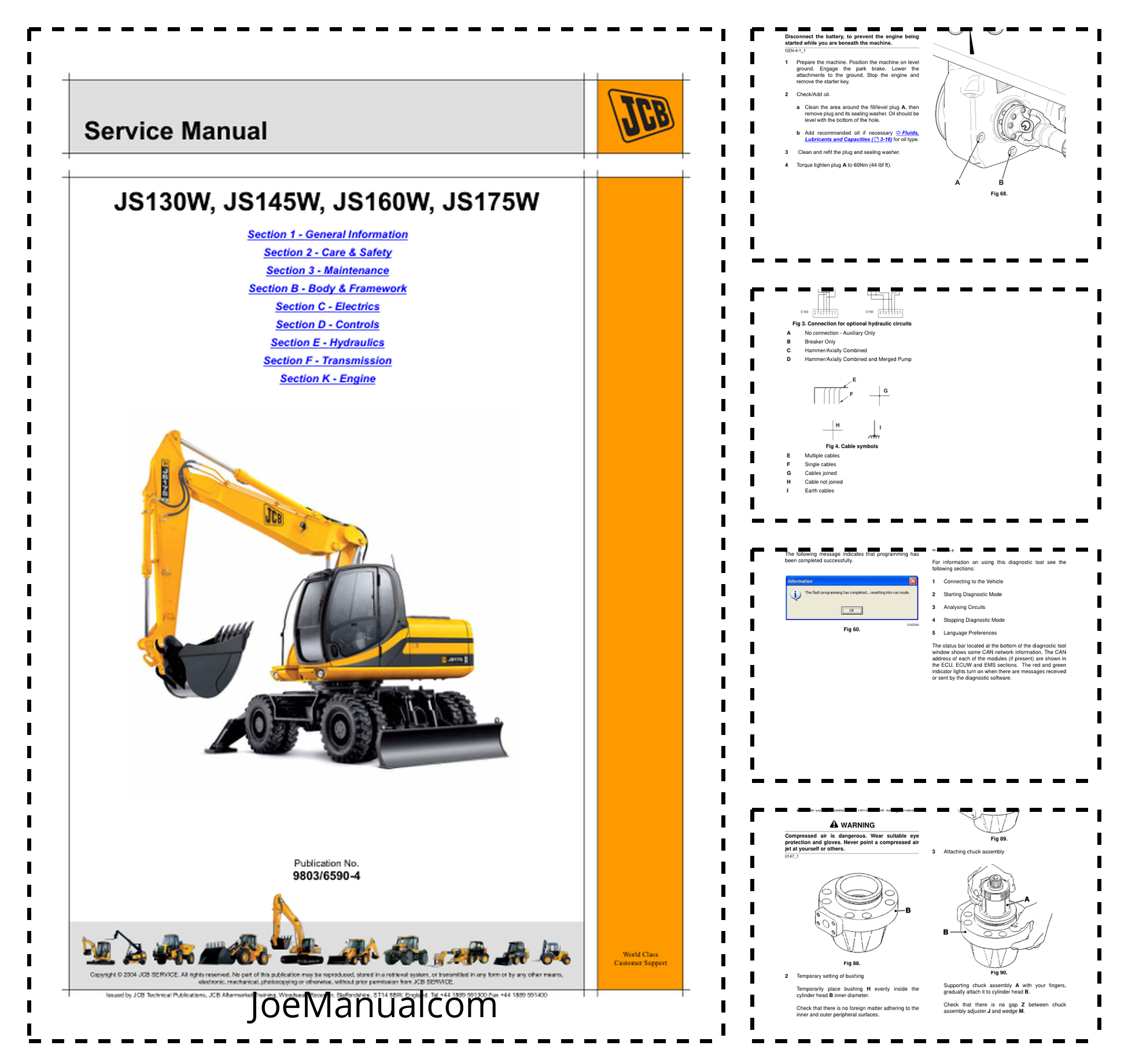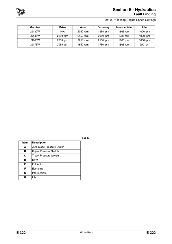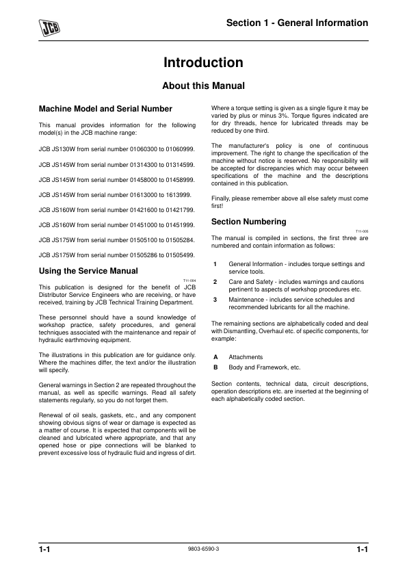 JCB JS130W 145W 160W 175W Excavators Service Manual 9803/6590-4