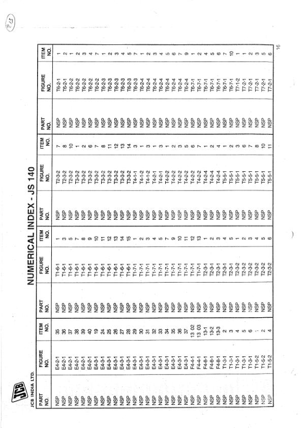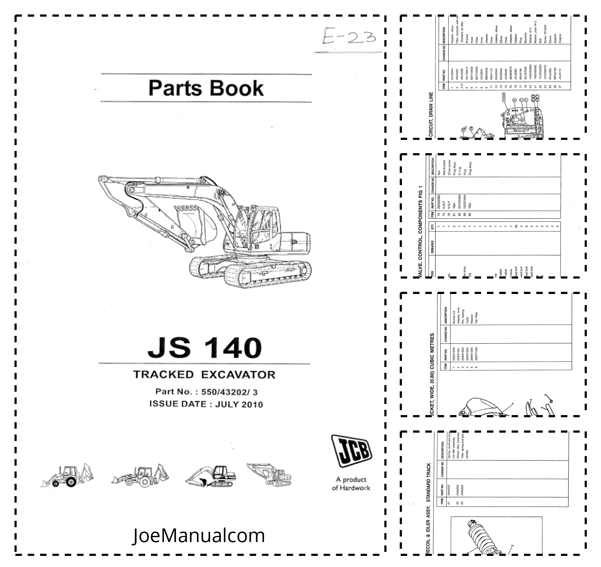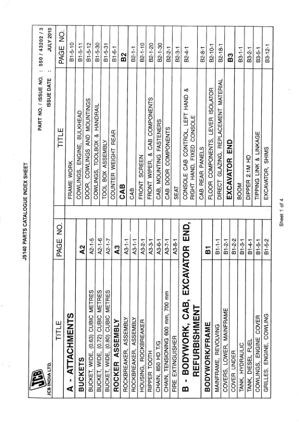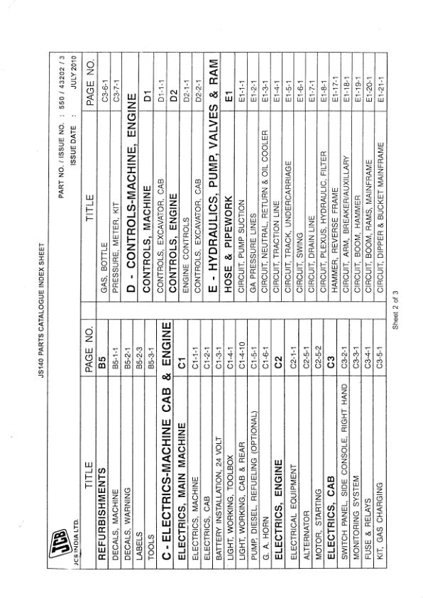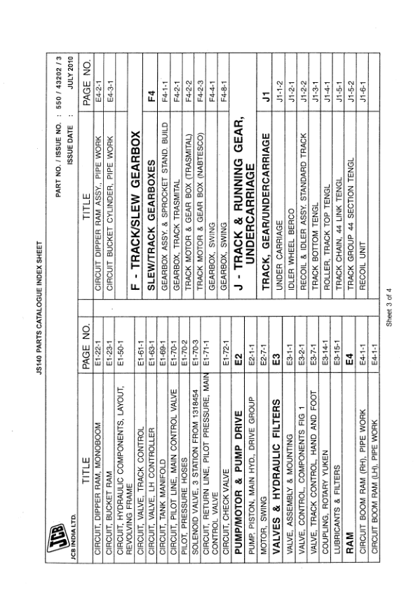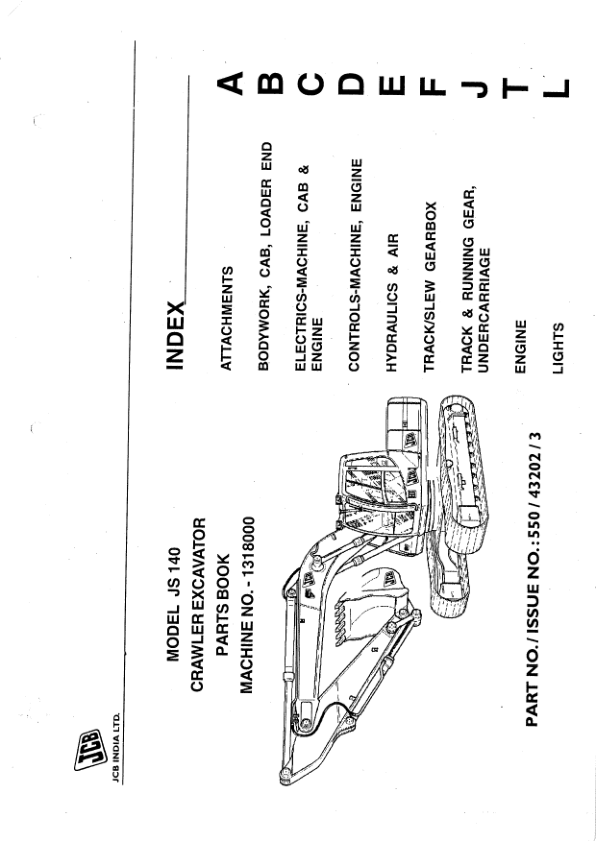 JCB JS140 Excavator Parts Catalog 550-43202-3