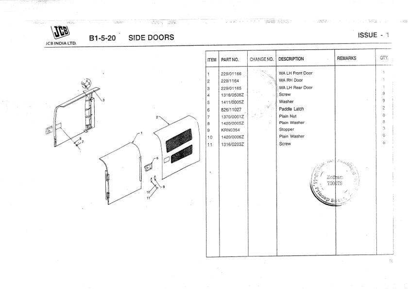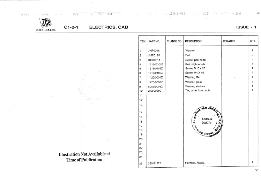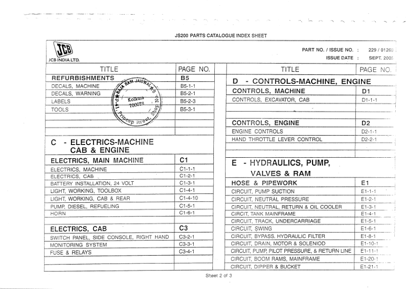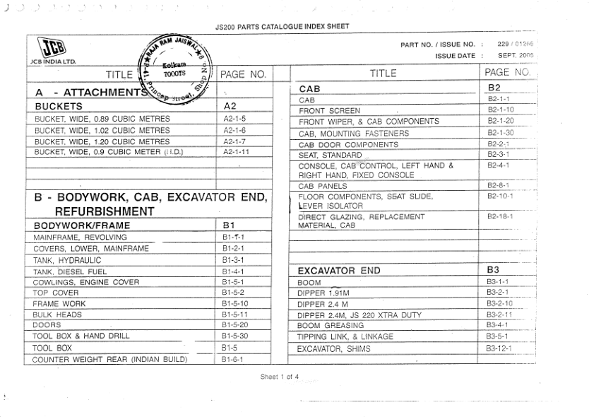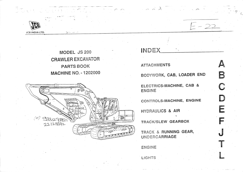 JCB JS200 Excavator Parts Catalog SN 1202000 and Below