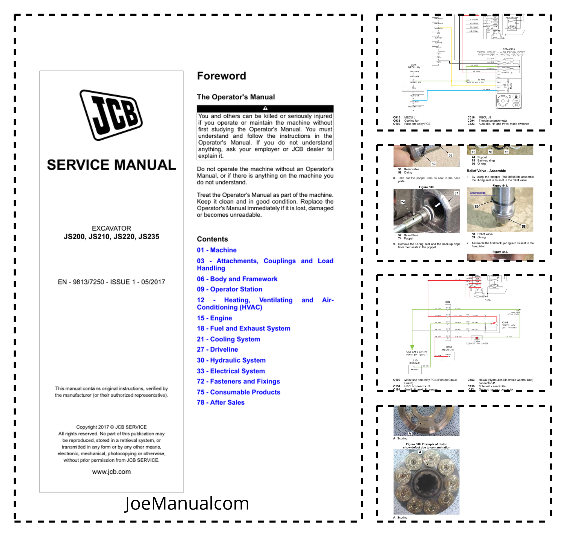 JCB JS200 JS210 JS220 JS235 Excavators Service Manual 9813/7250