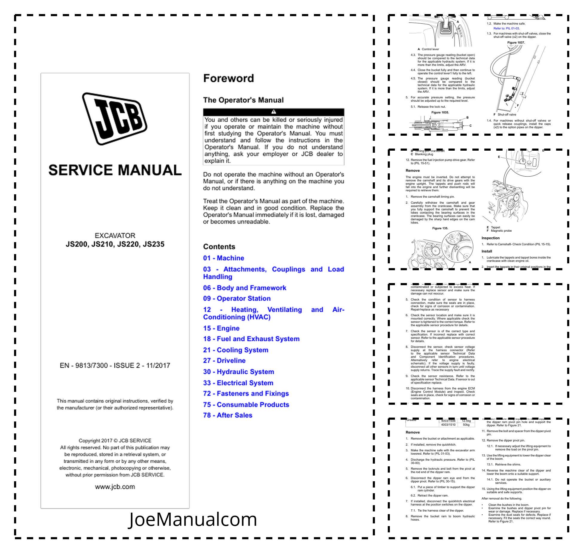JCB JS200 JS210 JS220 JS235 Excavators Service Manual 9813/7300