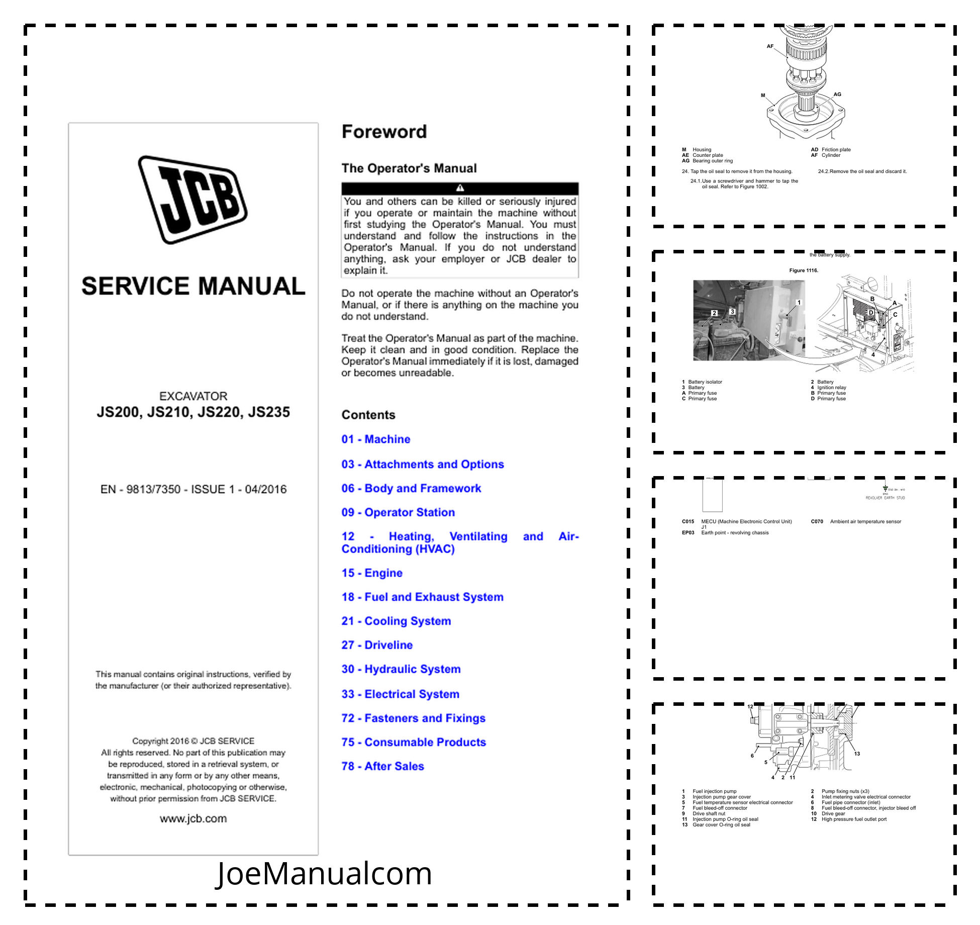 JCB JS200 JS210 JS220 JS235 Excavators Service Manual 9813/7350